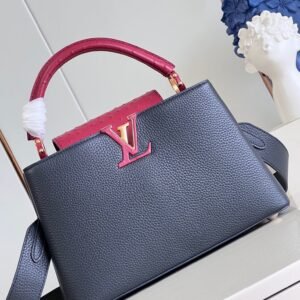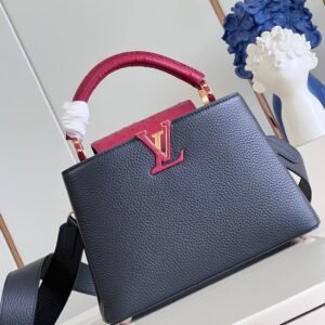 [Exclusive real shot M81409 Navy Blue/Medium] N83103 Capucines MM handbag is made of Taurillon leather to create an exquisite shape, and the flap, handle and LV letters are wrapped in ostrich leather. The flap can be opened or closed to read the LV logo, and the wide, removable leather shoulder strap adds a modern touch. size:31.5 x 20 x 11cm