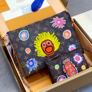 Upgraded version ⚠️M81982 embroidered LV x YK TOILETRY POUCH ON CHAIN handbag and LV x YK Toiletry Pouch On Chain handbag are from the Louis Vuitton x Yayoi Kusama collaboration series, turning travel storage into an art masterpiece. Colorful prints and embroideries appear on the surface of Monogram canvas, recalling the « My Eternal Soul » series of paintings created by the Japanese artist since 2009. Ample space and functional design, the detachable toiletry bag has internal pockets. 25 x 20 x 5.5 cm
