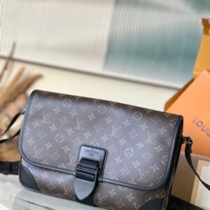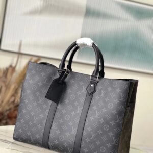 Top original order M46453 black full leather mini men’s bag series. As a compact handbag in the Sac Plat series, Monogram Eclipse coated canvas, cow leather trim, fabric lining, Sac Plat mini handbag this time combined with Monogram Eclipse canvas, leather trim and metal hardware, with removable name tag and wide cowhide leather side straps. The on-the-go cross-body design has plenty of room for a smartphone, wallet and keys. Dimensions: 19 x 22 x 7 cm