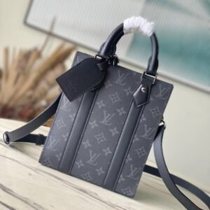 Top Original M46453 Black Flower Mini Men’s Bag Series As a compact handbag in the Sac Plat series, the Sac Plat mini handbag combines Monogram Eclipse canvas, leather trim and fabric lining. Metal hardware with removable name tag and wide cowhide leather side straps. The on-the-go cross-body design has plenty of room for a smartphone, wallet and keys. Dimensions: 19 x 22 x 7 cm