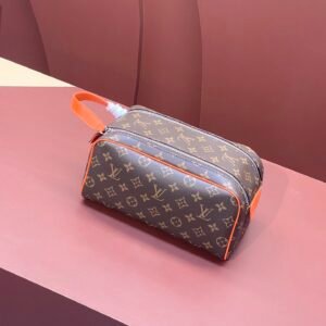 M47528 orange! (Cosmetic bag) The large toiletry bag has a generous appearance and is made of soft-touch canvas. It is equipped with a large double zipper opening for easy access to items. Holds all your toiletry essentials. -Damier canvas texture, leather lining -Silver silver hardware -Double zipper closure, equipped with leather straps -Built-in zipper patch pocket -size28x16x13cm.