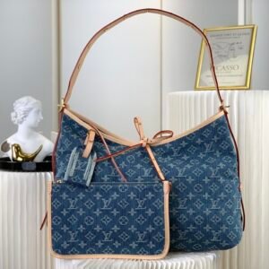 The medium Onthego bag is updated in sandwashed Monogram jacquard denim with leather trim and contrast stitching. Generous capacity meets business or leisure needs, exquisite handles and long shoulder straps unlock multiple carrying methods -