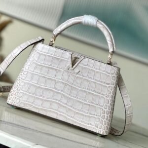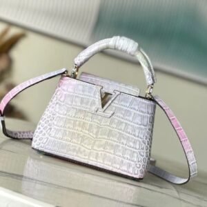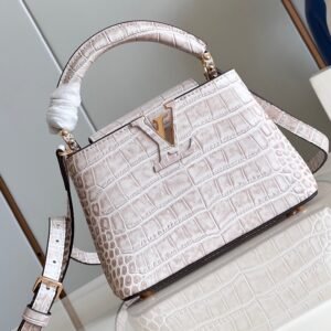 [Exclusive real shot M48865 Sahara crocodile pattern/mini] Capucines mini handbag is made of crocodile leather and has been polished to make it sparkle and charming. Lined with luxurious goatskin and gleaming metal hardware, the unique Capucines flap can be stored inside the bag to display the monogram, or can be folded out. size:21x14x8cm