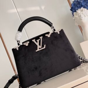 [Exclusive real shot M48865 black velvet white diamond corolla model/medium size] This Capucines Flower Crown MM handbag looks up to the starry night sky, and the deep velvet fabric is decorated with Monogram flowers. Each one is inlaid with imitation crystal, releasing eye-catching light. Comes with a woven chain shoulder strap, which can be worn as a shoulder or cross-body bag. It adds eye-catching color to a glamorous evening look. size:31.5x20x11cm