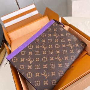 [Exclusive real shot M61692 Purple]❤ Comes with exquisite packaging as shown. Cut from the new iconic Monogram Eclipse canvas, this tough new Pochette Voyage medium handbag can easily store personal items. 27 x 21 x 6 cm (length x height x width)