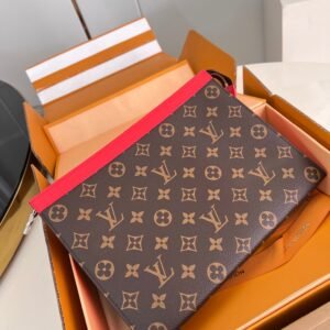 [Exclusive real shot M61692 red]❤ Comes with exquisite packaging as shown. Cut from the new iconic Monogram Eclipse canvas, this tough new Pochette Voyage medium handbag can easily store personal items. 27 x 21 x 6 cm (length x height x width)