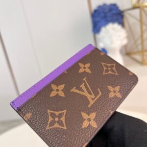 [Exclusive real shot M61733 Purple] M82875 This small card holder is made of Monogram Macassar coated canvas, with bright tones for the top cow leather trim and elegant lining. The internal space can accommodate large cards and bills, and the external mezzanine is convenient for accessing bank cards and transportation cards. 11 x 7 x 0.5 cm (length x height x width)