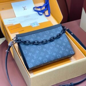 Upgraded version ⚠️M61692 black flower shoulder strap model! This style is made of the new iconic black and gray Monogram Eclipse canvas. It has an adjustable function, card slots and a lipstick pocket inside. This tough new Pochette Voyage medium handbag can easily store personal essentials. Size 26cmx20cm