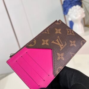 [Exclusive real shot of M64038 rose] M82912 This Coin card holder combines Monogram Macassar canvas and bright Taurillon leather trim. It has a zipper compartment, a flat patch pocket and an external card compartment in a compact structure, which can store coins, banknotes and receipts. The delicate zipper pull is embellished with LV letters. 8 x 14.5 x 1 cm (length x height x width)
