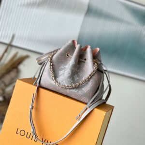 Overseas original order M23388 Bella bucket bag is made of engraved cow leather to create a drape structure. The subtle color gradient and light-colored chain on the perforated Monogram pattern convey a subtle beauty. Use the leather chain handle or the detachable and adjustable leather shoulder strap to switch between shoulder and shoulder styles. Size: 19*22*14cm