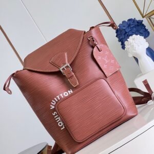 [Exclusive real shot M23099 brown] This Montsouris backpack is made of cow leather, showing an enlarged version of the Epi leather embossing. Drawstring closure and zippered front pocket allow for easy travel, the Louis Vuitton logo surrounds the front pocket, and a removable name tag is embellished with Monogram elements. 32 x 40 x 19 cm (length x height x width)