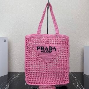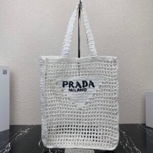 [Top Original Order]????Raffia Tote Bag????1BG393????????This soft deconstructed tote bag is made of raffia fiber material. The light and natural material expresses the summer mood. The iconic house triangle logo is reinterpreted and decorates the front of the bag, with an embroidered lettering logo in the center to evoke the brand’s style. So beautiful????A must-have for summer, hurry up and get it????????Dimensions: length 36x height 38x bottom 3cm