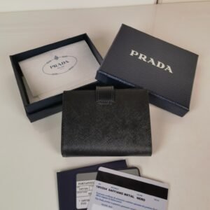 Prada. Classic card holder, model 1MC122, made of cross-grain cowhide, size 6.5×2.5×11cm, adopts snap button opening and closing design, and has two slots for cards or tickets. This exquisite card holder is small and convenient, with sufficient capacity and easy to place. It is easy to store in your bag, and can also be used as a separate item when going out every day. It is a hot seller????
