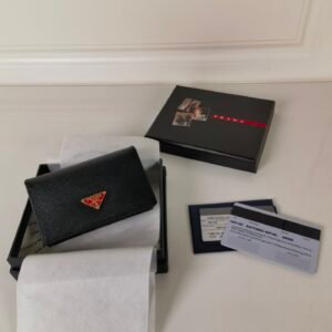 Prada’s latest triangular micro-label card holder, model 1MC211, a perfect combination of Saffiano cross-grain leather and imported calfskin, size 6.5×10cm, large capacity, five pleated card slots, snap button opening and closing, more practical and safe, simple design modern
