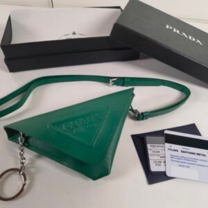 Pjia❤️ (key chain + coin bag combination) triangle expresses a unique personality and modern attitude through a universal simple silhouette, which is reinterpreted in different ways every season. Geometric triangular shapes evoke the design of this Saffiano leather keychain charm. High-quality Saffiano leather, the House’s signature material, features a cross-hatch texture and a waxed finish.