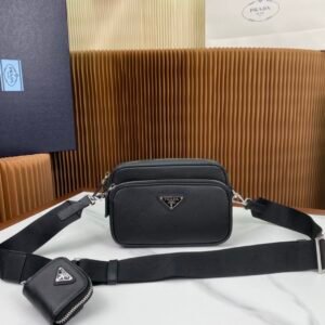 [Top Original Order] PD Camera Bag 2VH069???????? This Brique handbag is made of Saffiano leather, and its simple lines highlight a striking style. The iconic Saffiano leather material is synonymous with luxury and a status symbol of traditional Italian leather goods manufacturing craftsmanship. This handbag is elegant in design, equipped with handles and a long removable nylon shoulder strap, and is very functional. ????????????Dimensions: length 22x height 16x width 6cm