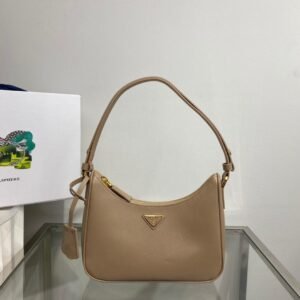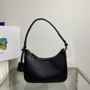 [Top original order] (Full leather) The latest 2023 counter ????hobo textured leather women’s armpit bag 1BC204 has arrived???? Made of cross-grain cowhide imported from Italy, triangle brand metal hardware, equipped with a small tag keychain, and a shoulder strap of 80 cm Adjustable????️Single shoulder + crossbody + portable multi-functional carrying method, fabric lining, 165 OEM code. Size: 22×18×6cm!
