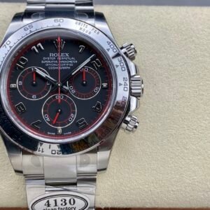 Size 40mm x 12.2mm Movement Asian Super Clone4130 movement 28800vph, 1:1 replicated from the genuine movement, fully functional. Blue spring same as genuiine. 72 Hours power reserve, ShangHai 4130 movement Functions Hours, minutes, sub-seconds display and chronograph Case Solid 904L stainless steel case Crystal Scratch-proof sapphire crystal with AR coating Dial Black dial Bezel Black ceramic tachymeter bezel with steel wrapped Strap Real ARF 904L stainless steel bracelet with perfect SEL, smooth and soft Clasp Deployant clasp Water resistance >50 Meters Please be informed that this rating is merely a guide. We do do not advise submerging or immersing any replica watch in water unless you have had your watch water-proofed by a professional. We do not guarantee the product’s water-resistance and as such we do not refund, offer store credit, exchange or do a free repair on any watch that has water damage. -
