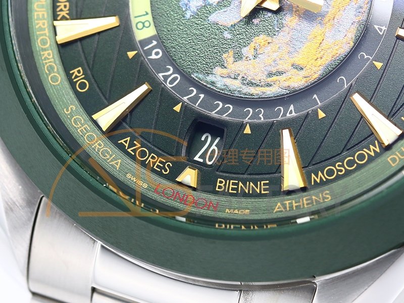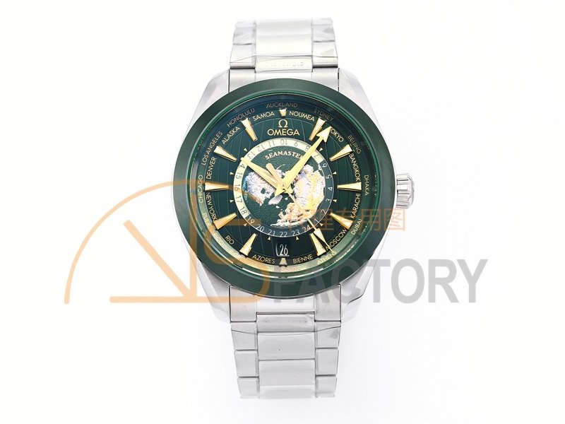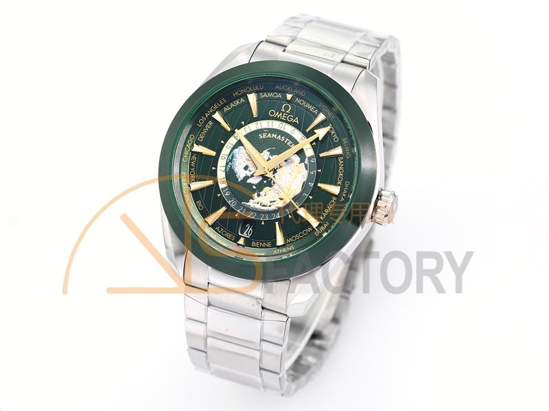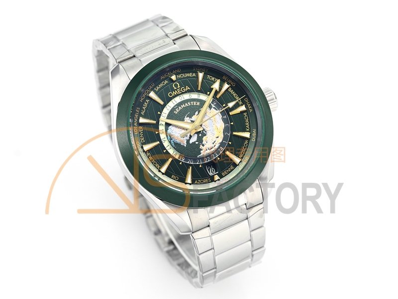 Aqua Terra GMT Worldtimer 43mm Green Ceramic VSF 1:1 Best Edition on SS Bracelet A8938 Super Clone