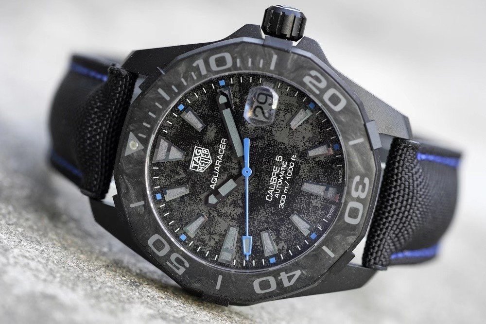 Soyez le premier à laisser votre avis sur “Aquaracer Calibre 5 PVD 41mm TARF 1:1 Best Edition Carbon/Blue Dial on Black Nylon Strap SW200”