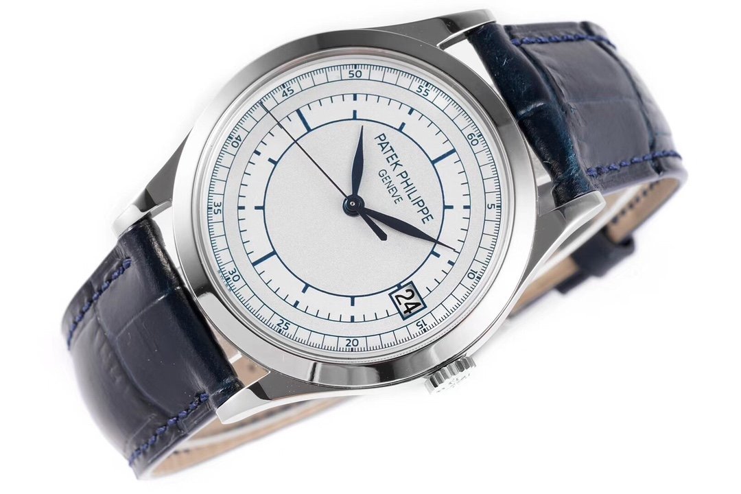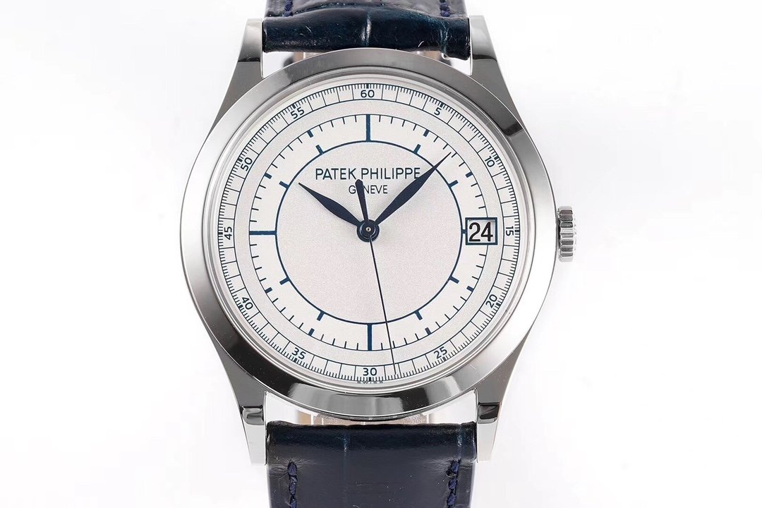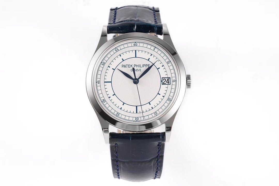 Calatrava 5296G SS ZF 1:1 Best Edition White Dial Blue Hands on Blue Leather Strap 324CS