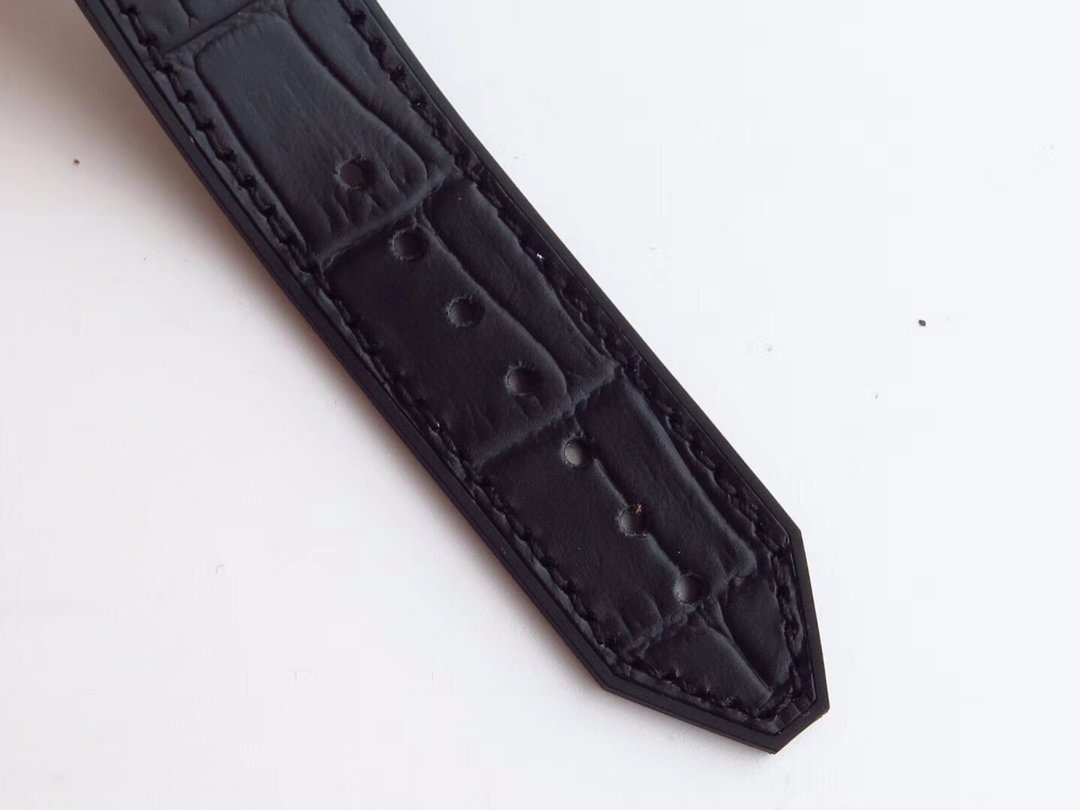 BRACELET: Black Leather Clad Gummy Leather Clad Rubber Strap with Deployant buckle