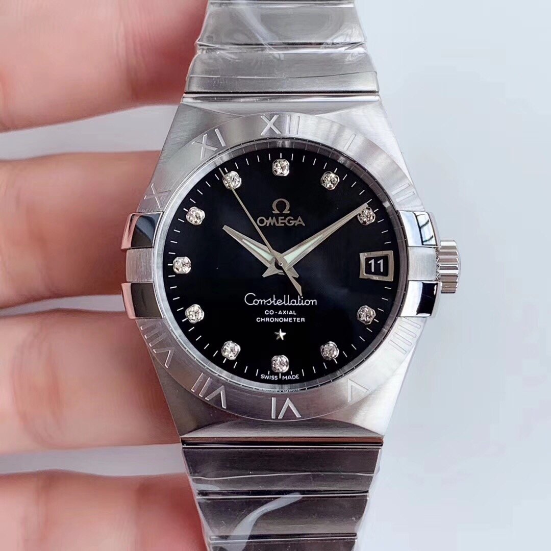 Constellation 38mm SS VSF 1:1 Best Edition Black Dial Moissanite on SS Bracelet A8500 Super Clone