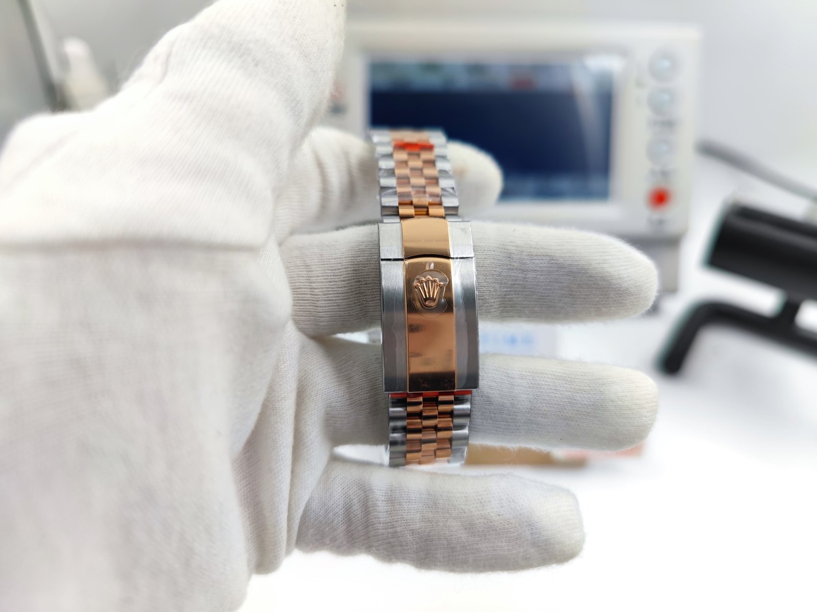 | Strap | 904L stainless steel bracelet with 18k rose gold plated middle links |