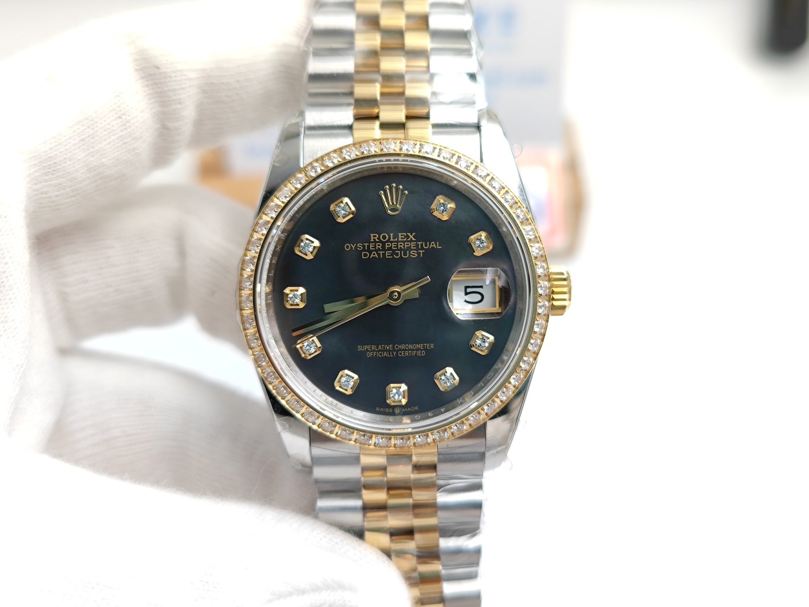 DateJust 36mm Jub Diams YG/SS Blk MOP/Diams BPF A2836