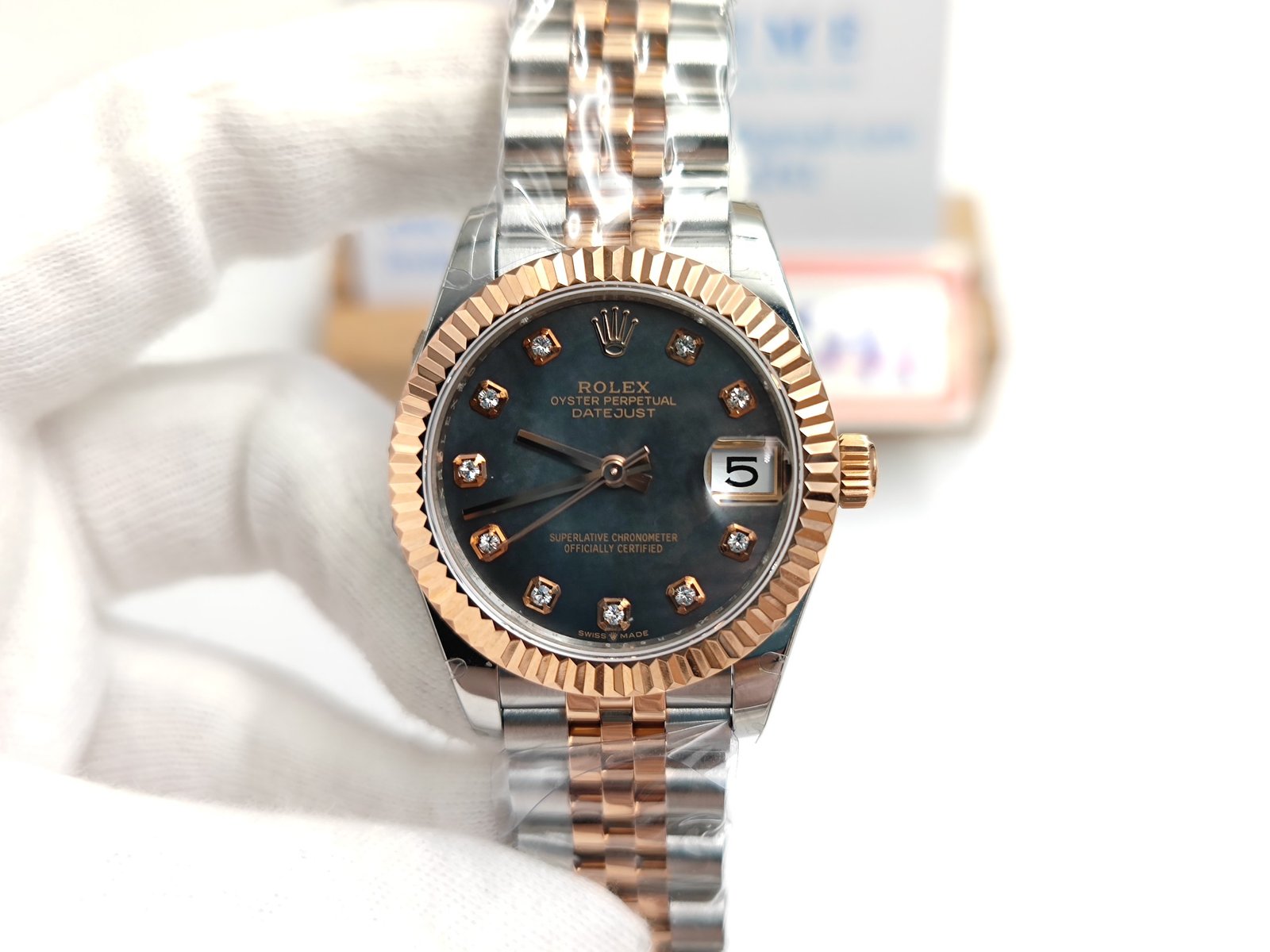 DateJust 36mm Jub Flt RG/SS Black MOP Diams BPF A3135 Mod
