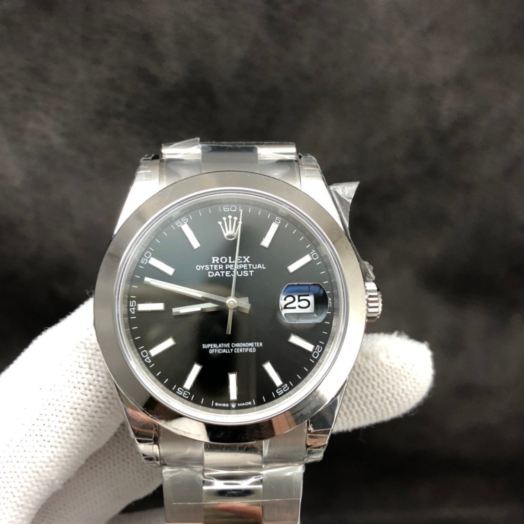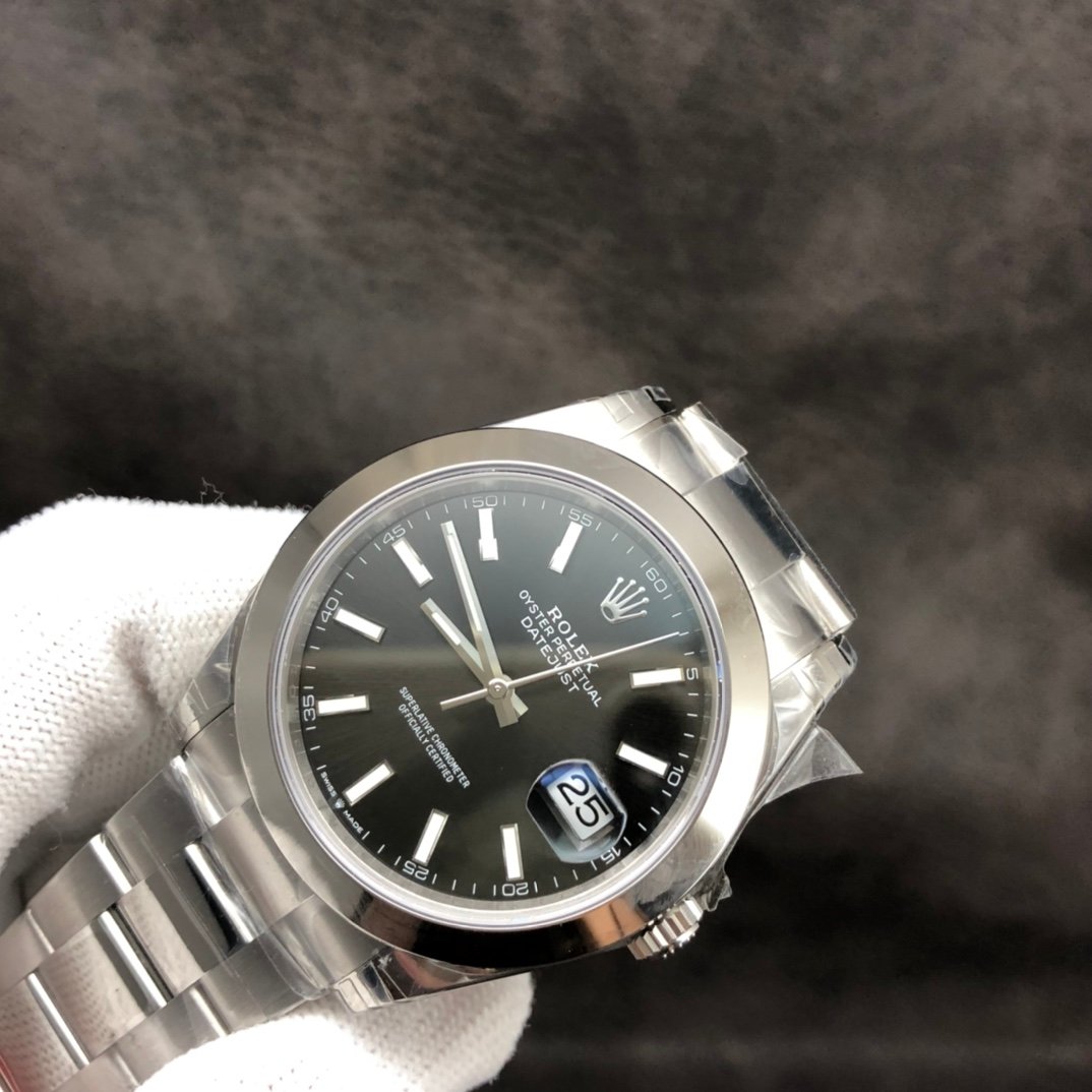 DateJust 41mm Oyster Flt 904L SS/SS Black/Stk Smooth Bezel VSF VS3235