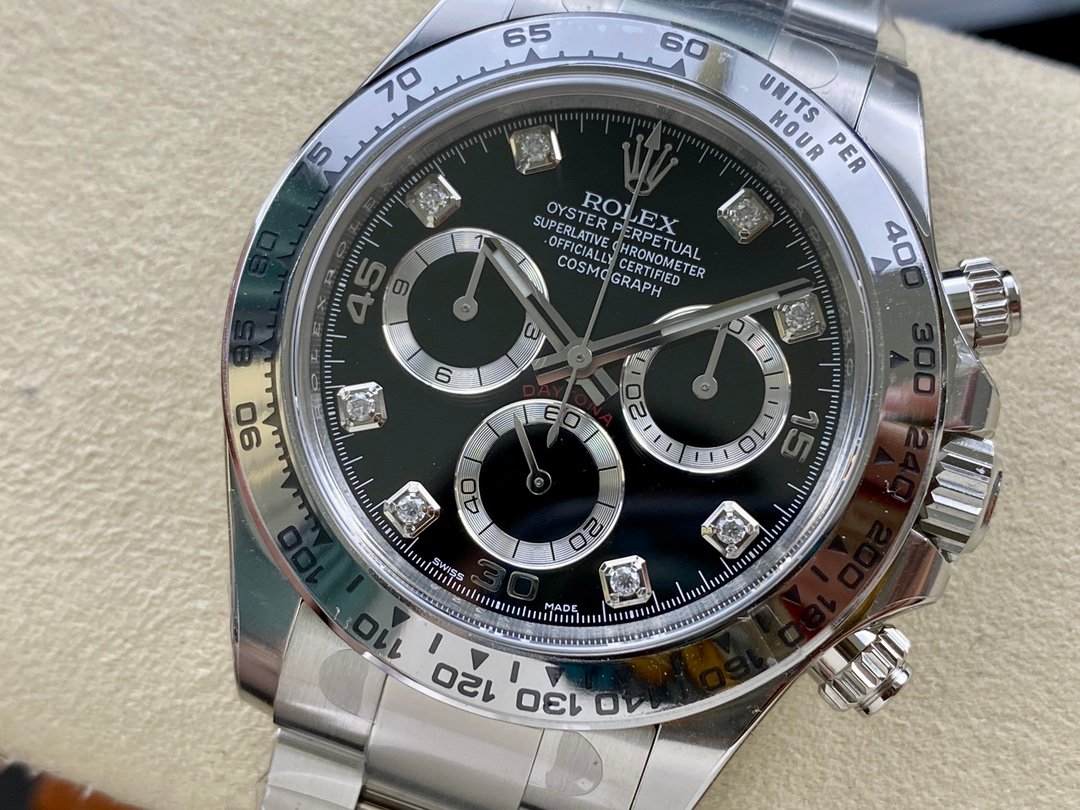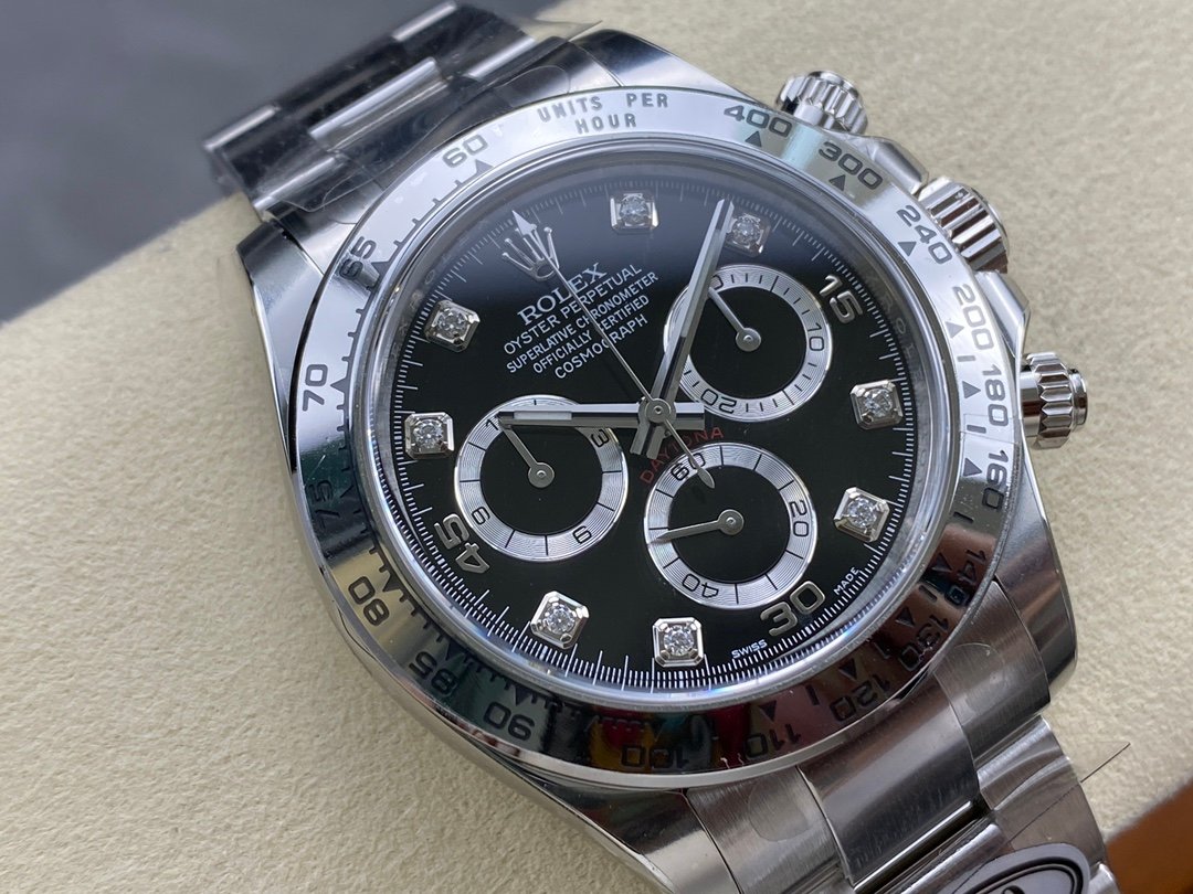 Daytona 116509 SS Clean Factory 1:1 Best Edition Black Diamonds Dial on SS Oyster Bracelet A4130