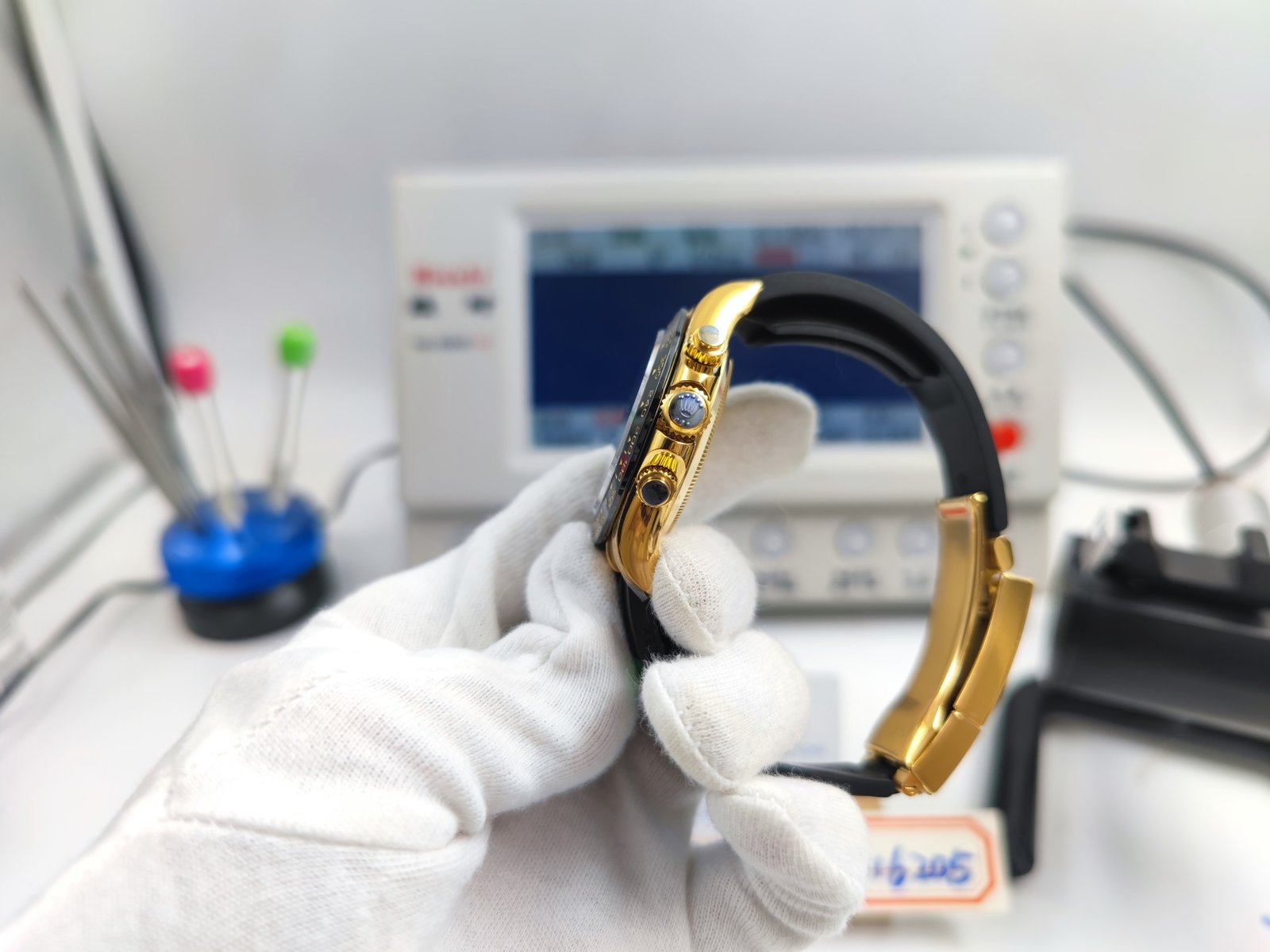 | Case | 18k yellow gold plated 1:1 replicated solid 904L stainless steel case |