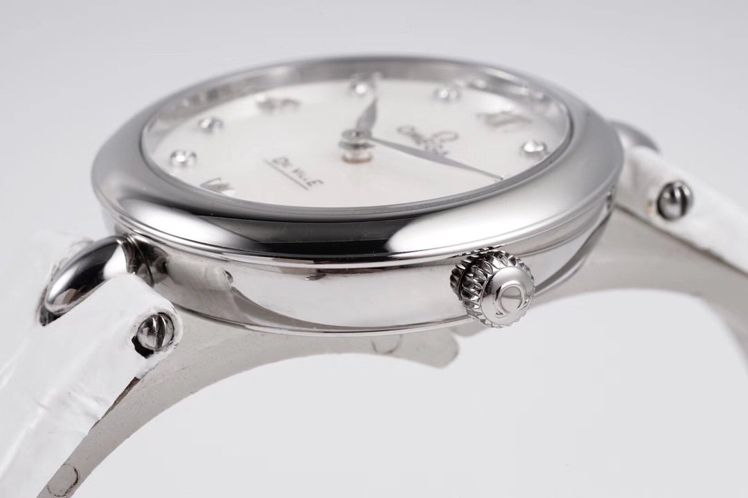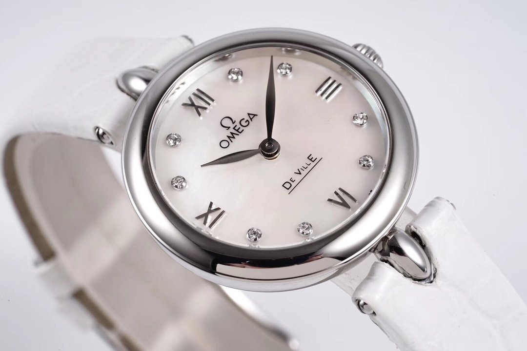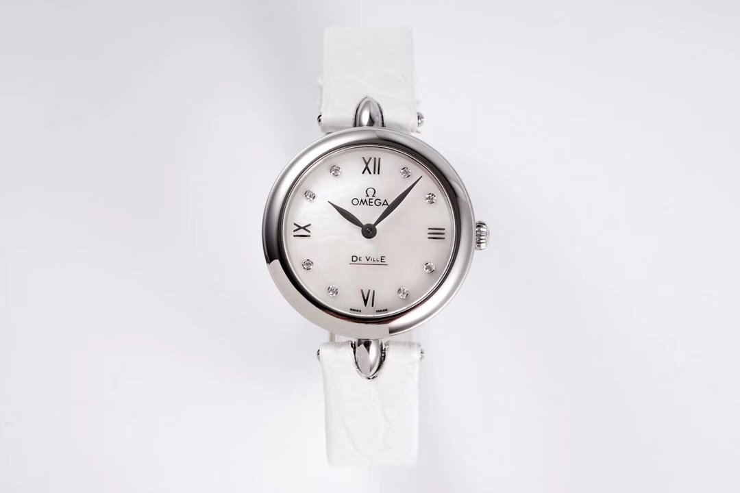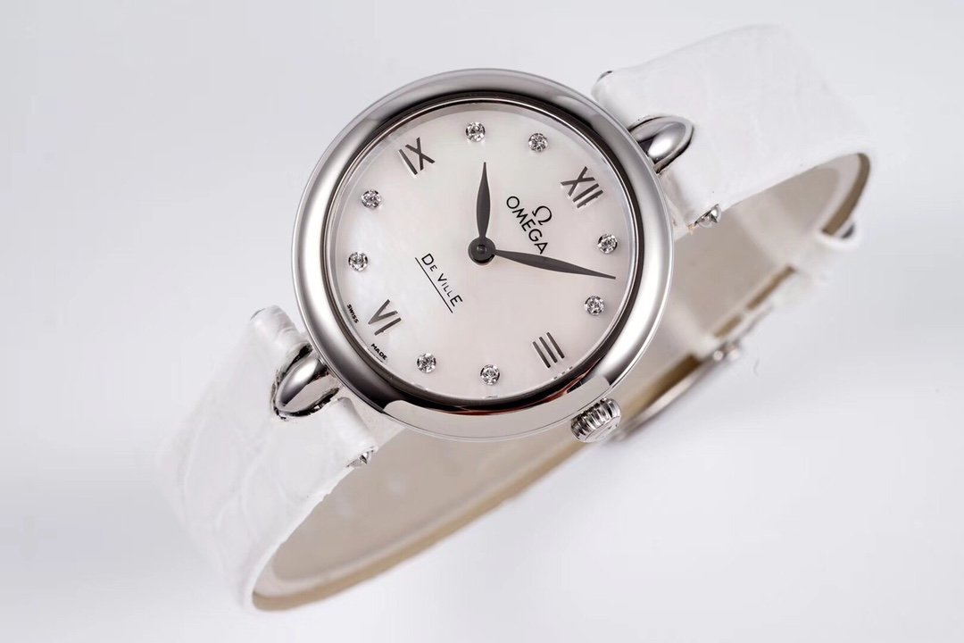 De Ville 27.4mm SS 1:1 Best Edition White Dial on White Leather Strap