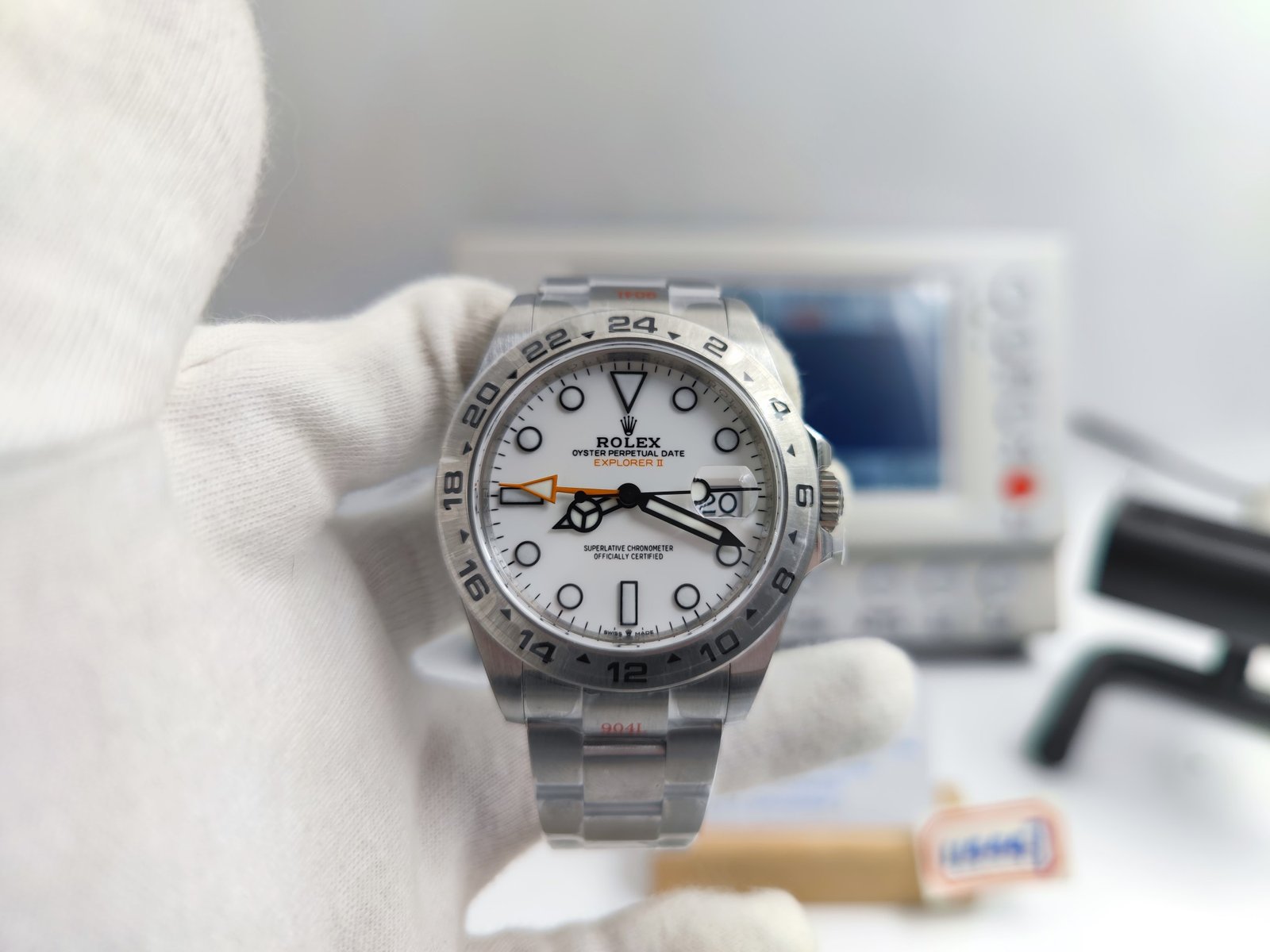 Explorer II 42mm 226570 Black 904L SS V2 GMF 1:1 Best Edition White Dial on Bracelet Super Clone SH3285 (Correct Hand Stack)