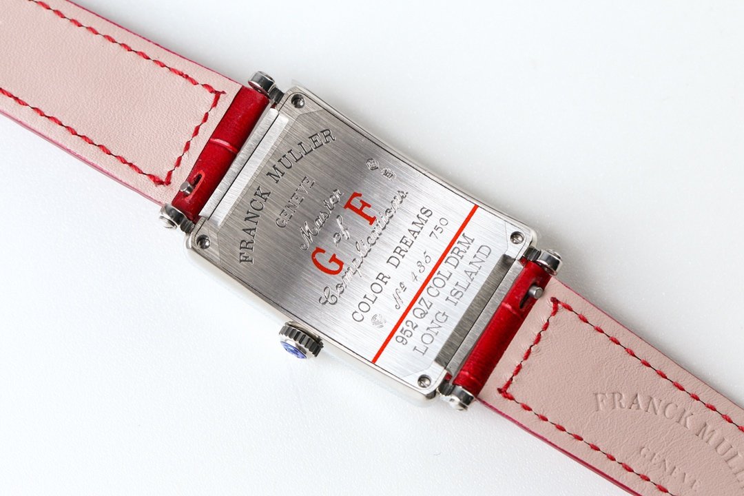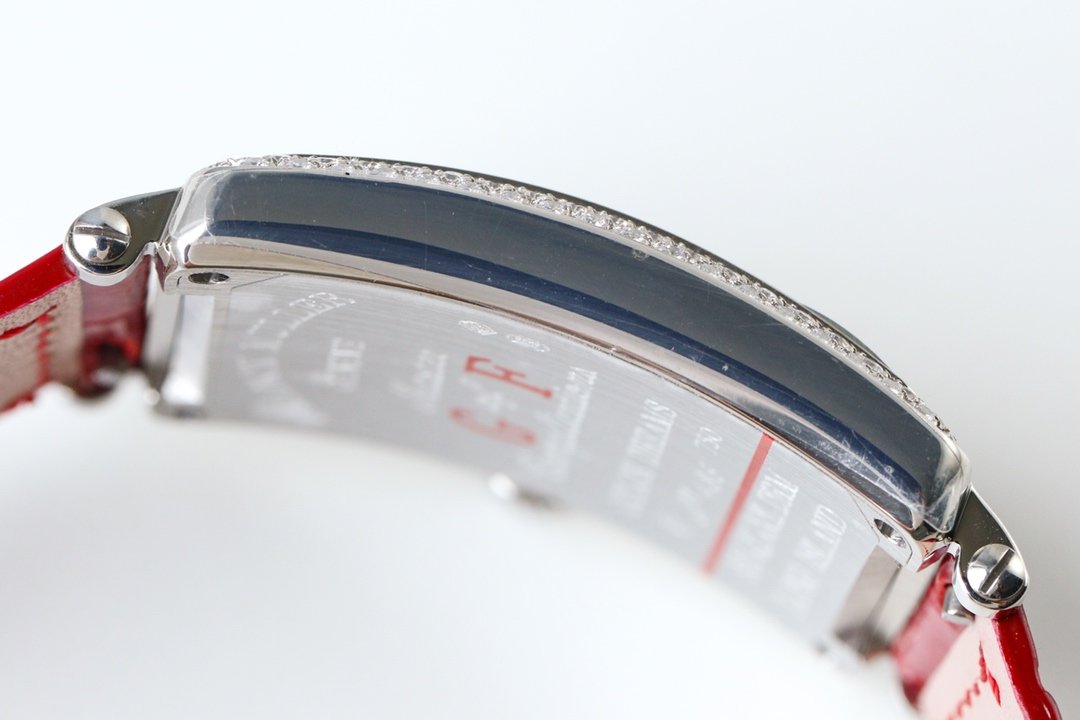 Long Island Ladies SS Diamonds Bezel 1:1 Mother of Pearl Dial on Red Leather Strap Swiss Ronda Quartz