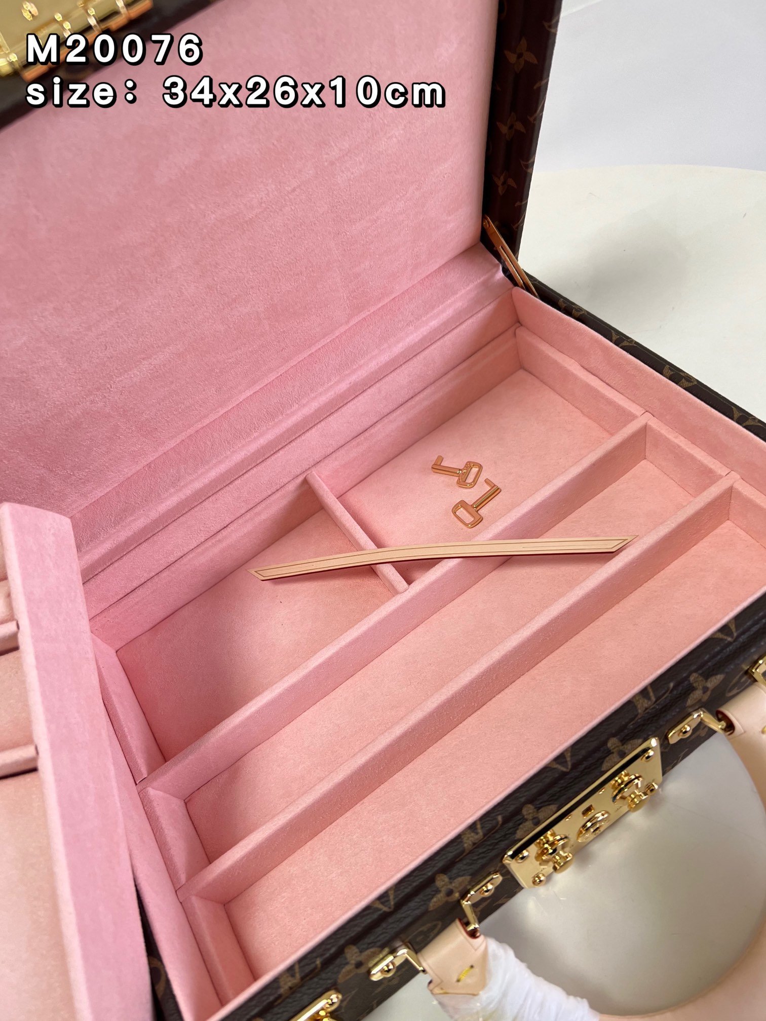 [Exclusive real shot M20076] BOÎTE BIJOUX jewelry box This Monogram jewelry box is especially suitable for carrying precious items when traveling. It has thirteen compartments of different sizes, and uses an S lock with two suitcase mortise locks to open and close. Detailed features 34 x 26 x 10 cm (length x height x width)