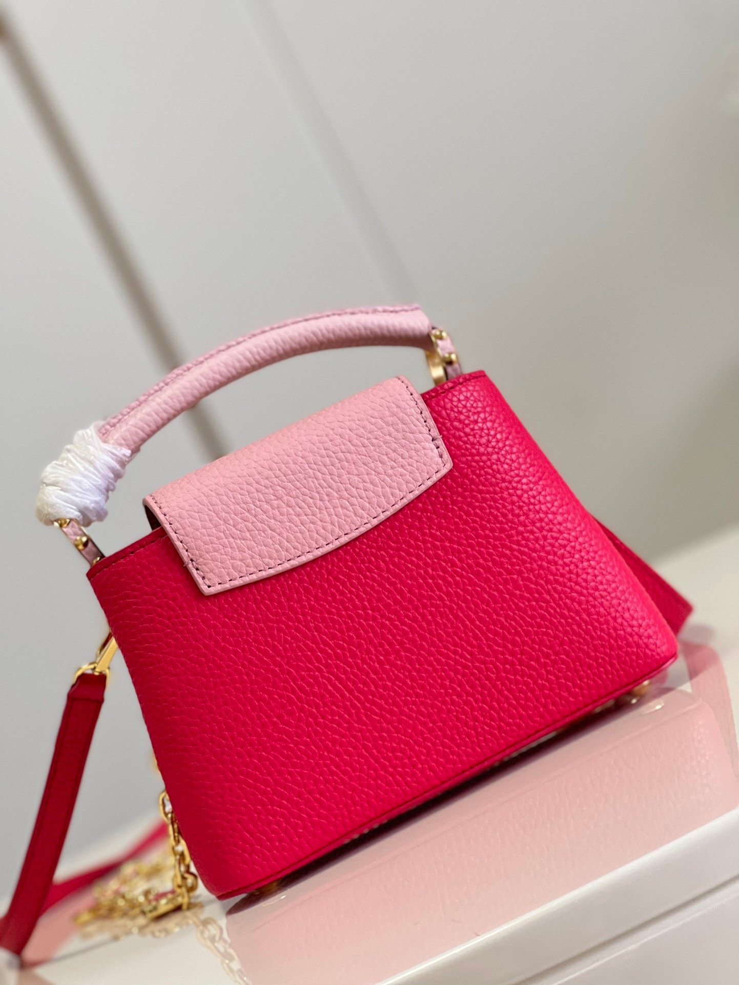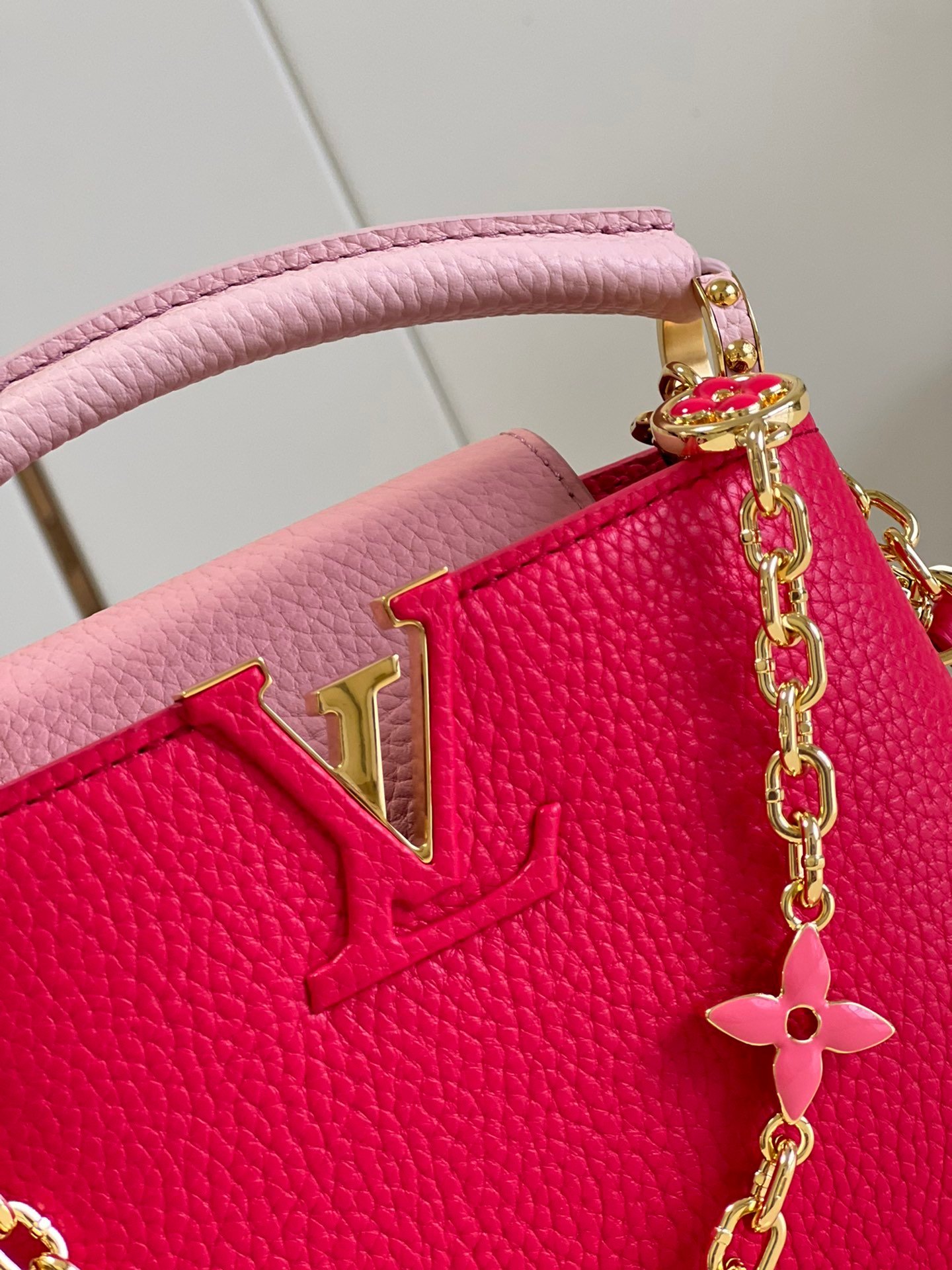 [Exclusive real shot M20845 rose/mini] Capucines mini handbag bathes in the new season. Metal Monogram flowers are colored by hand polishing and glazing, and are connected with exquisite chains. Use the detachable and adjustable slim shoulder strap to explore more carrying options. Dimensions 21 x 14 x 8 cm cm (length x height x width)