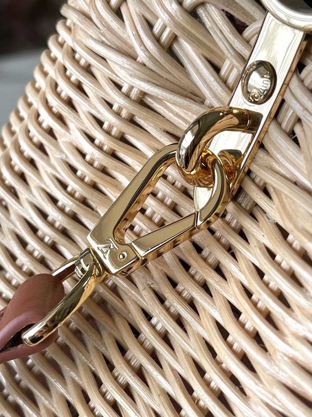 Limited Edition Top Original M22173 Caramel Color CAPUCINES Handbag. Fresh and rich in French style, custom-made bamboo and rattan weaving is completely handmade. Launched in the summer of 2018, it is a limited edition. This handbag is bound to be a hit and can inject avant-garde fashion style into this season’s look. Pure steel brushed hardware, cowhide leather lining, exquisite workmanship. Size: 27*20*9 (fully hand-stitched and woven, pure cowhide leather lining, original top-notch brushed hardware)