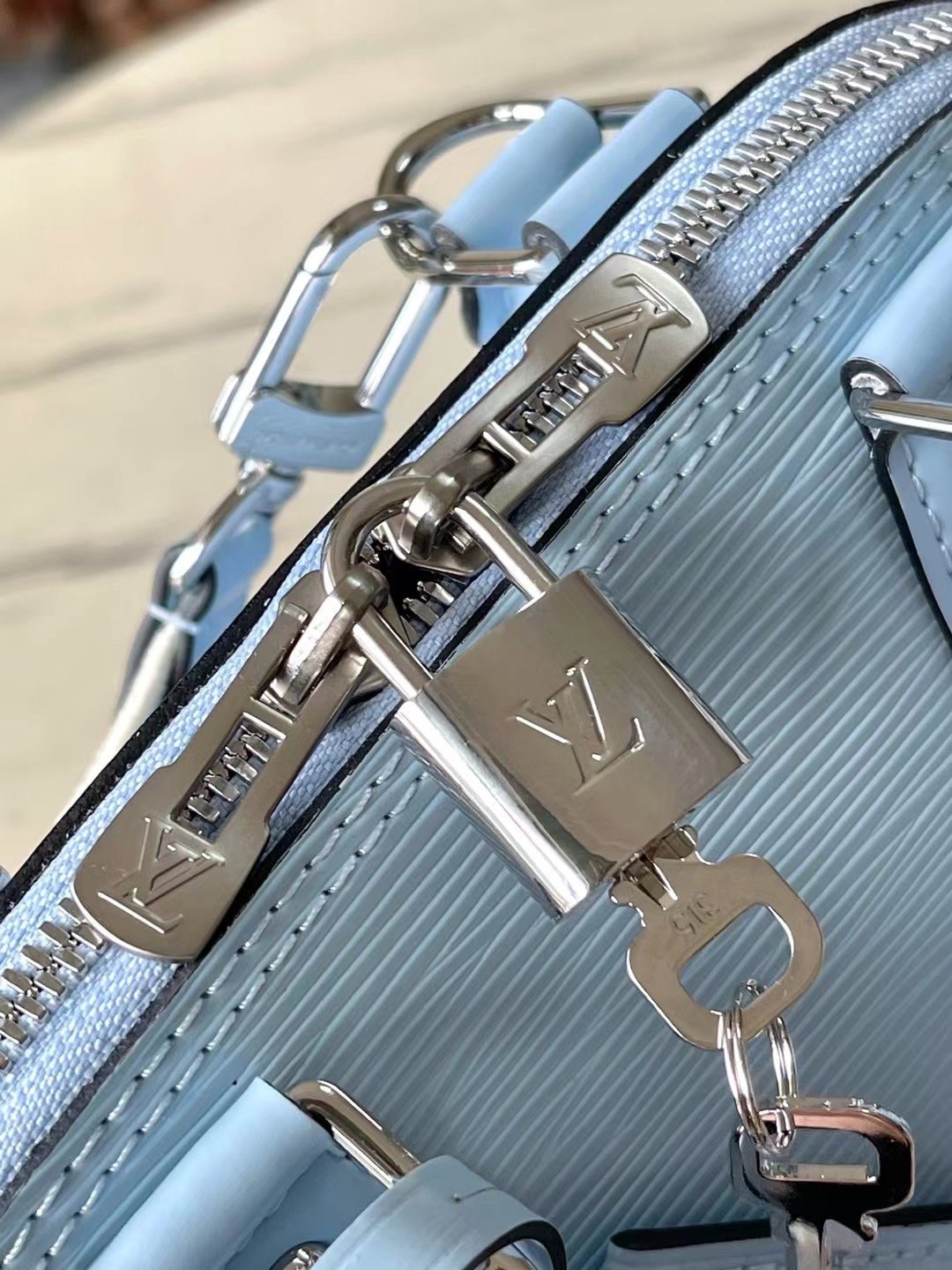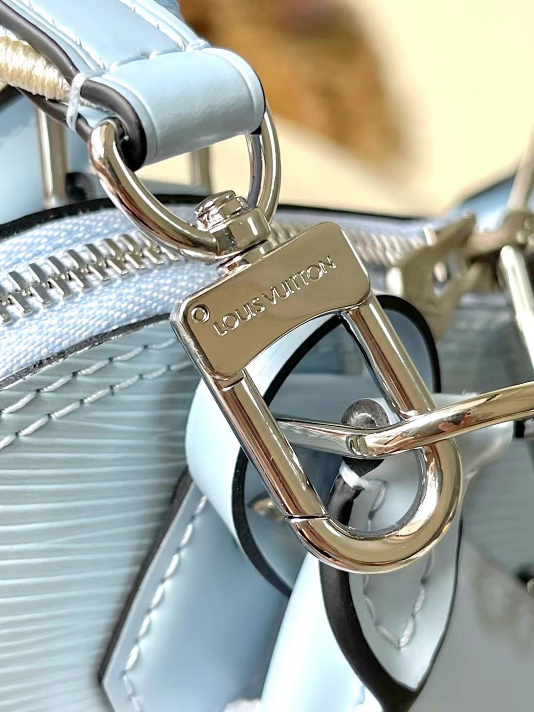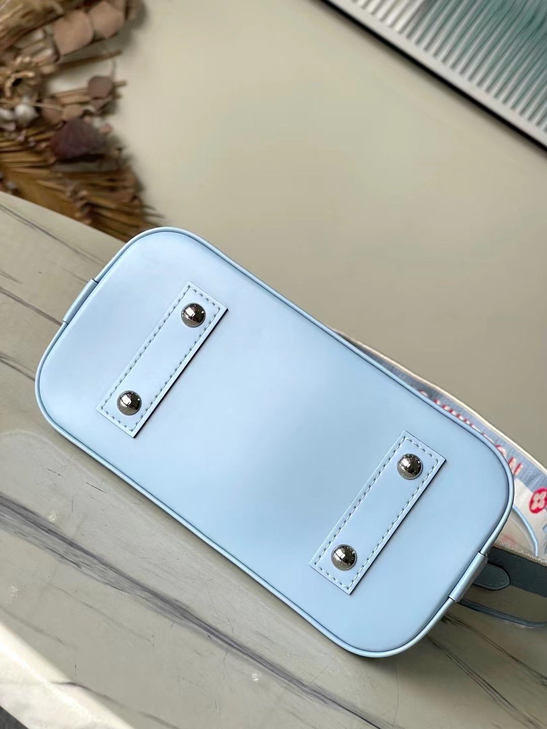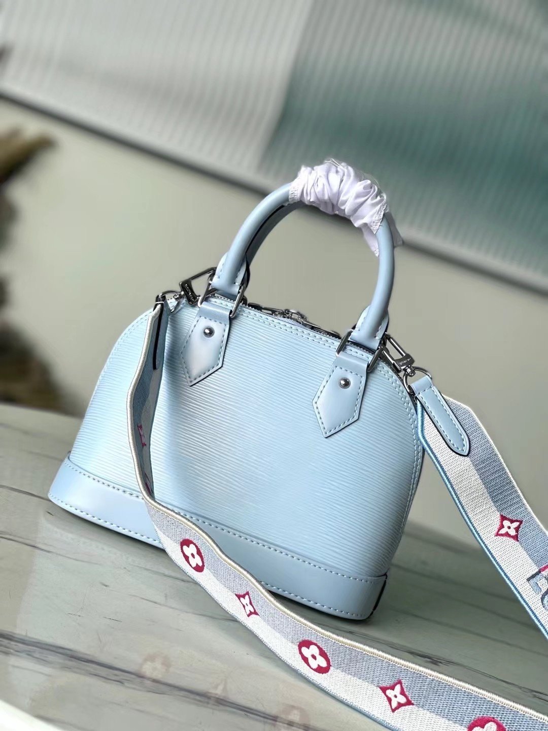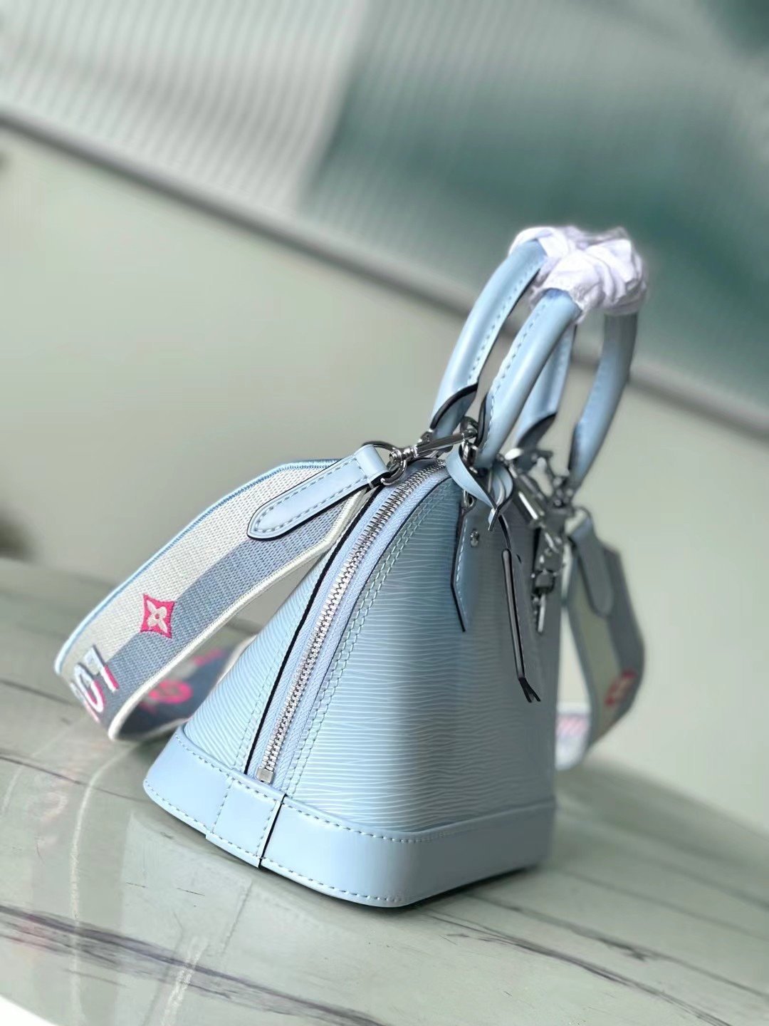 The top original M22357 light blue is then outlined with exquisite stitching to instantly capture the visual focus. Detailed features 23.5 x 17.5 x 11.5 cm (length x height x width)