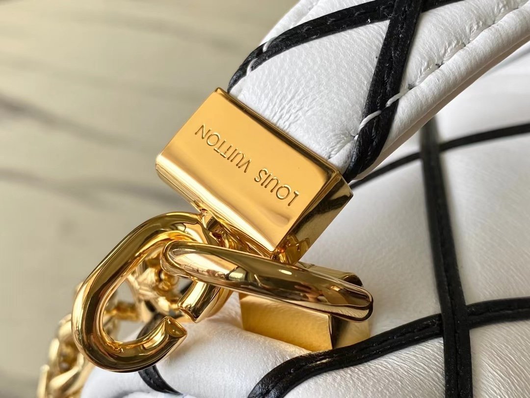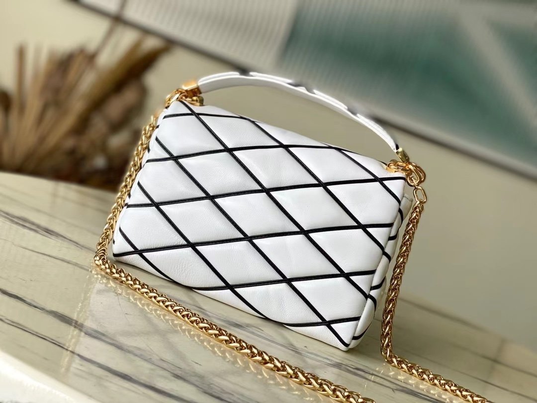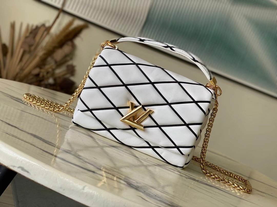 Top original order M22890 White This medium-sized G0-14 handbag is made of gorgeous sheep leather, with a finger stitch pattern that pays homage to the brand’s traditional luggage design. The LV Twist twist lock highlights the eye-catching style, and the top handle can be carried by hand alone, or it can be transformed into a leather shoulder pad on the sliding chain shoulder strap for a comfortable shoulder or cross-body experience. Dimensions: 23 × 16 × 10 cm