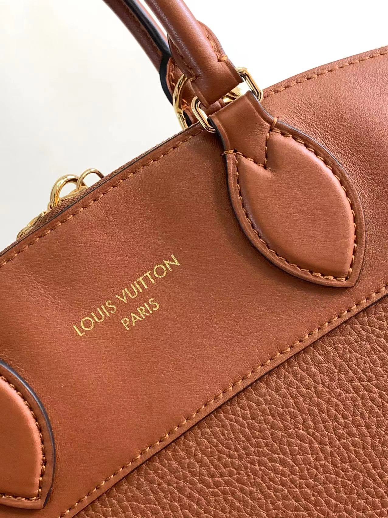 Sophisticated and functional, the Lock It MM bag is crafted in fine grained Taurillon leather and smooth calfskin, with gold-finish buckles and hardware. Signature House touches include padlocks, key bells and hot-stamped Louis Vuitton signatures. Featuring an articulated top handle and removable strap, this tote offers a variety of carrying options. 36×29×15cm (length×height×width)