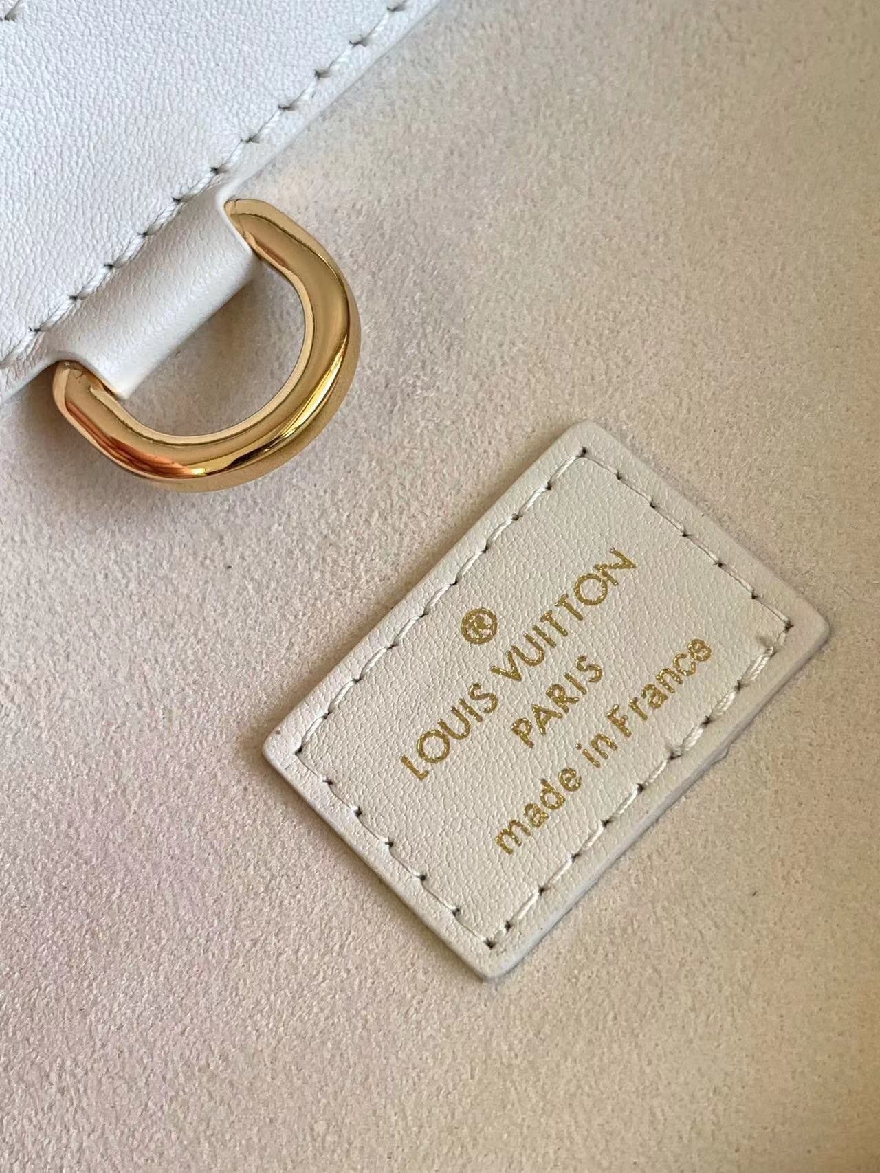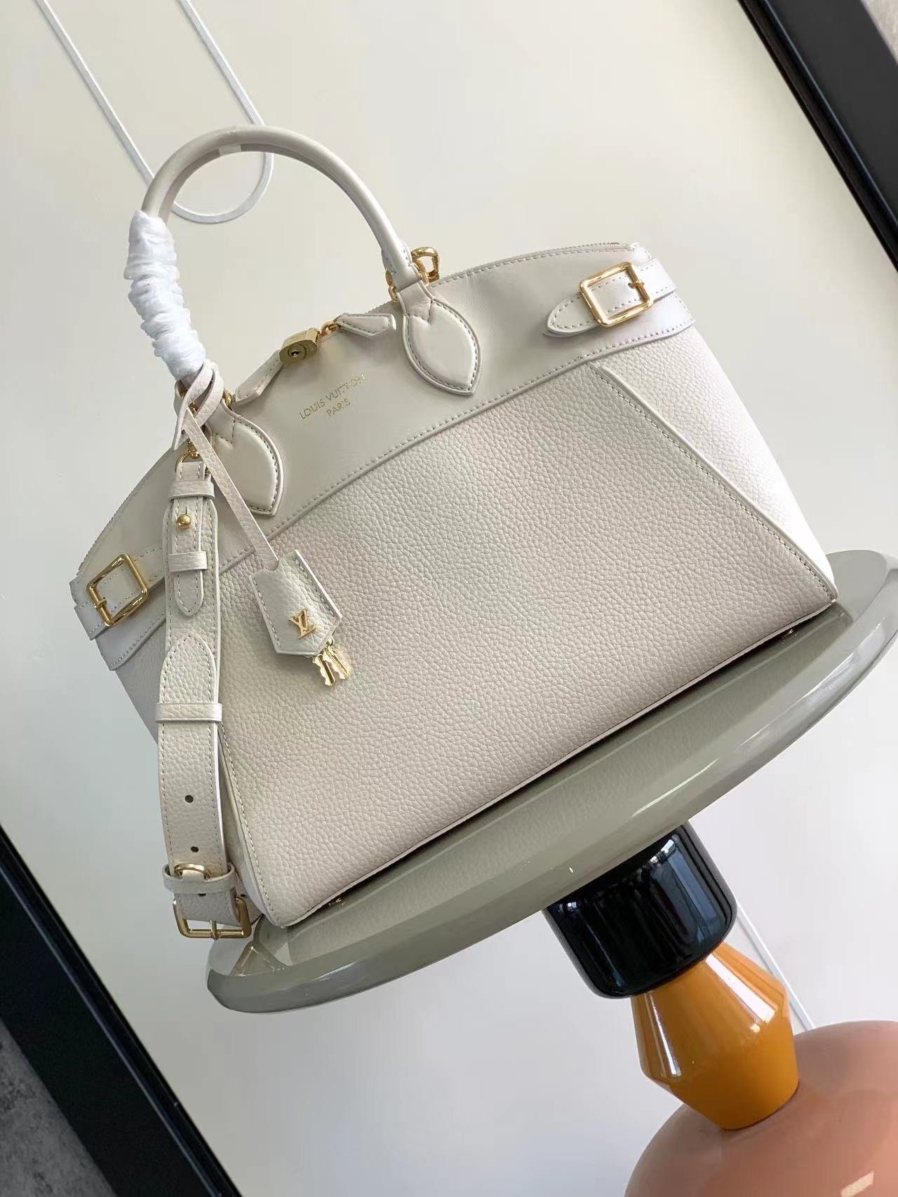Sophisticated and functional, the Lock It MM bag is crafted in fine grained Taurillon leather and smooth calfskin, with gold-finish buckles and hardware. Signature House touches include padlocks, key bells and hot-stamped Louis Vuitton signatures. Featuring an articulated top handle and removable strap, this tote offers a variety of carrying options. 36×29×15cm (length×height×width)