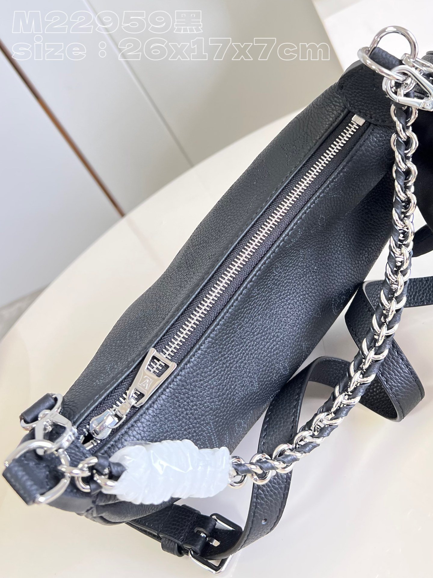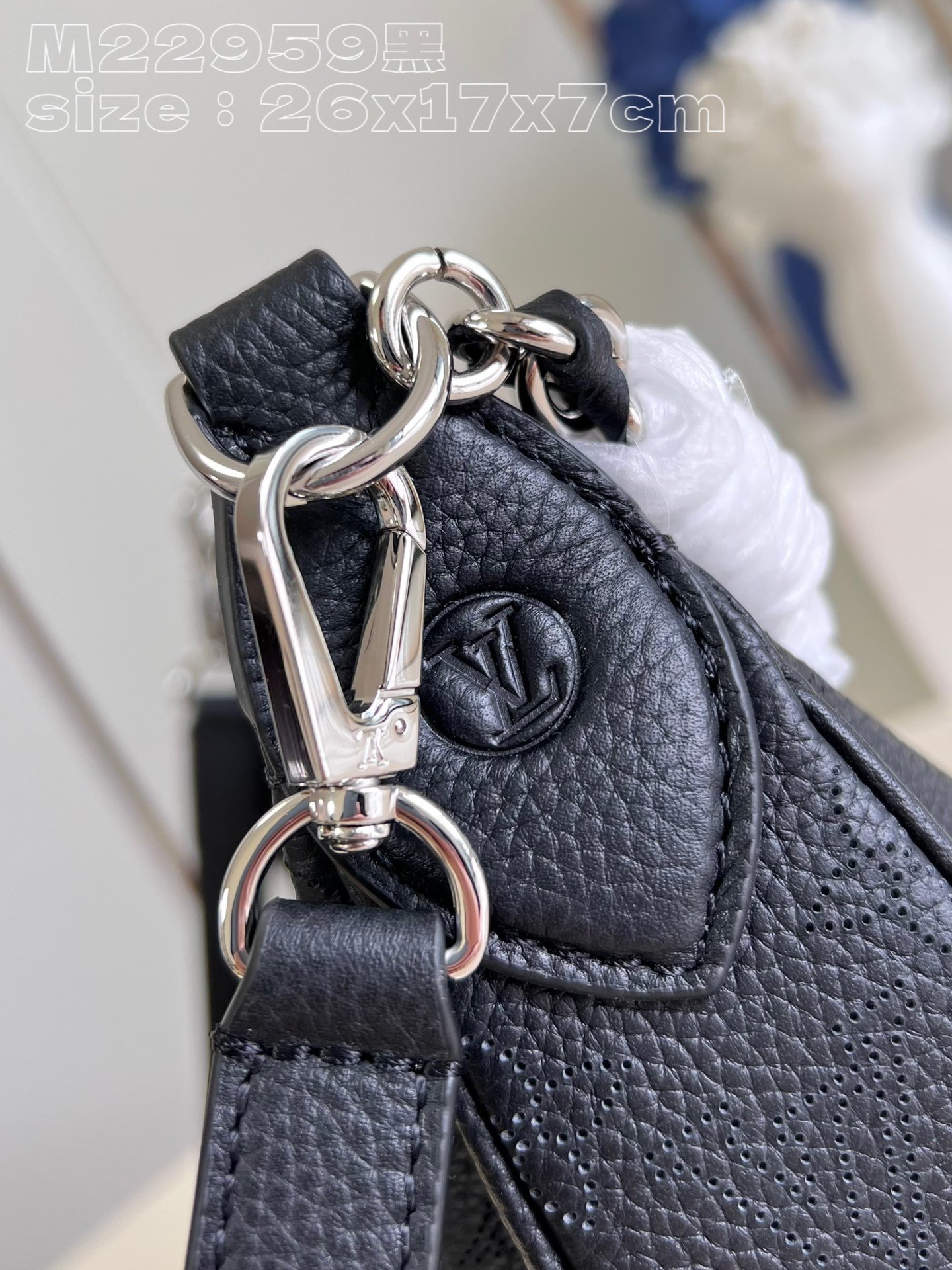 [Exclusive real shot M22959 black] The M22819 Baia small handbag is made of soft and drapey perforated cow leather, and joins the Mahina series with a comfortable and close-fitting half-moon silhouette. The leather and metal braided handles combined with the long adjustable shoulder strap allow for shoulder or cross-body carry options, and the coin purse is rich in details. Dimensions 26 x 17 x 7.5 cm (length x height x width)