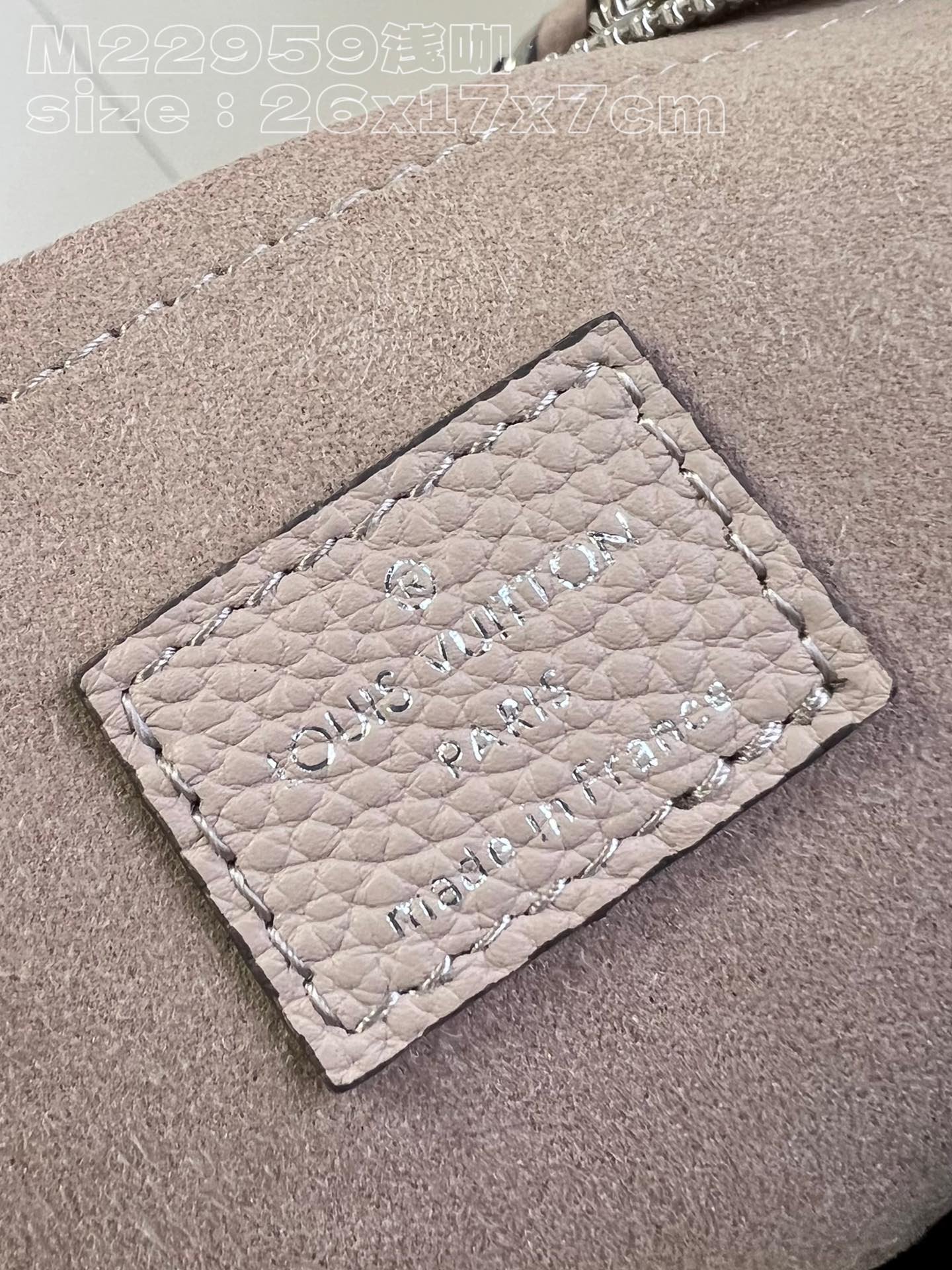 [Exclusive real shot of M22959 light coffee] The M22820 Baia small handbag is made of soft and drapey engraved and perforated cow leather, and joins the Mahina series with a comfortable and close-fitting half-moon silhouette. The leather and metal braided handles combined with the long adjustable shoulder strap allow for shoulder or cross-body carry options, and the coin purse is rich in details. Dimensions 26 x 17 x 7.5 cm (length x height x width)