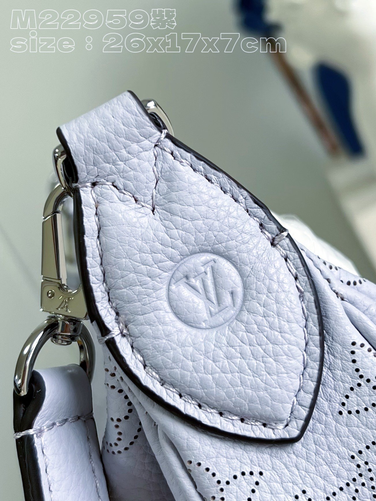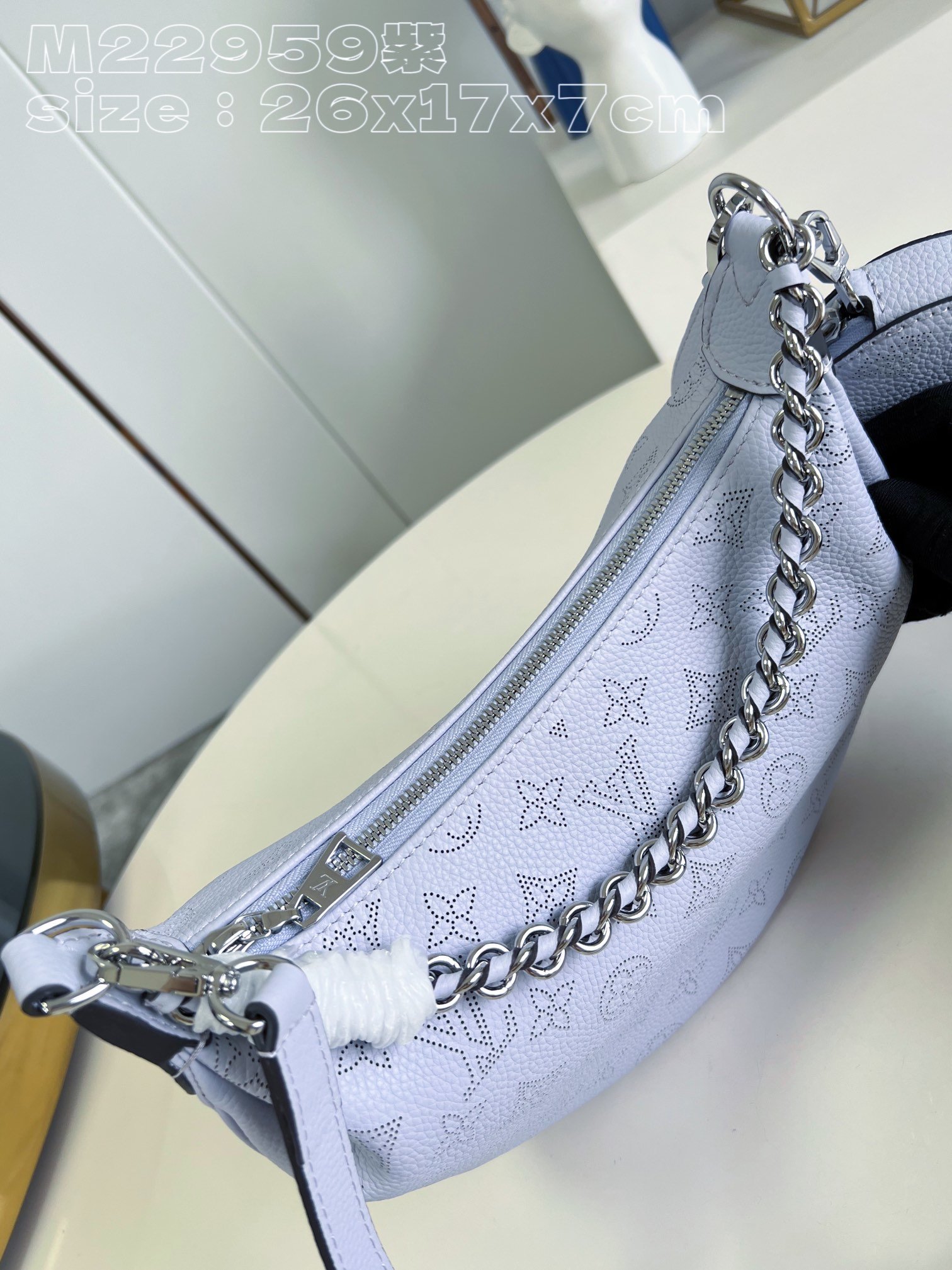 [Exclusive real shot M22959 Purple] The Baia small handbag is made of soft and drapey perforated cow leather, and joins the Mahina series with a comfortable and close-fitting half-moon silhouette. The leather and metal braided handles combined with the long adjustable shoulder strap allow for shoulder or cross-body carry options, and the coin purse is rich in details. Dimensions 26 x 17 x 7.5 cm (length x height x width)