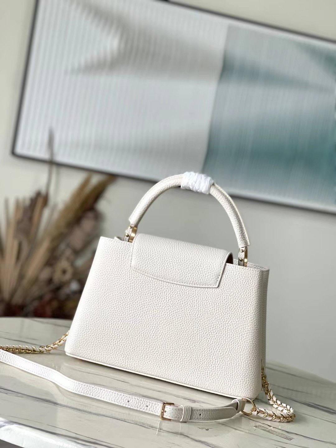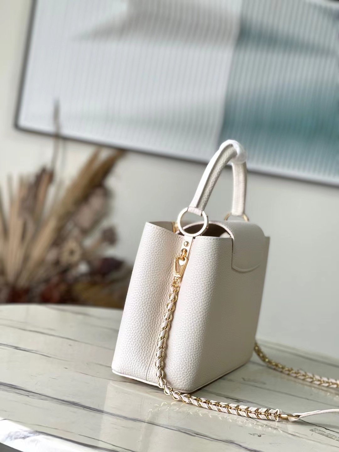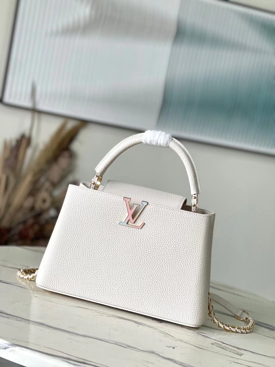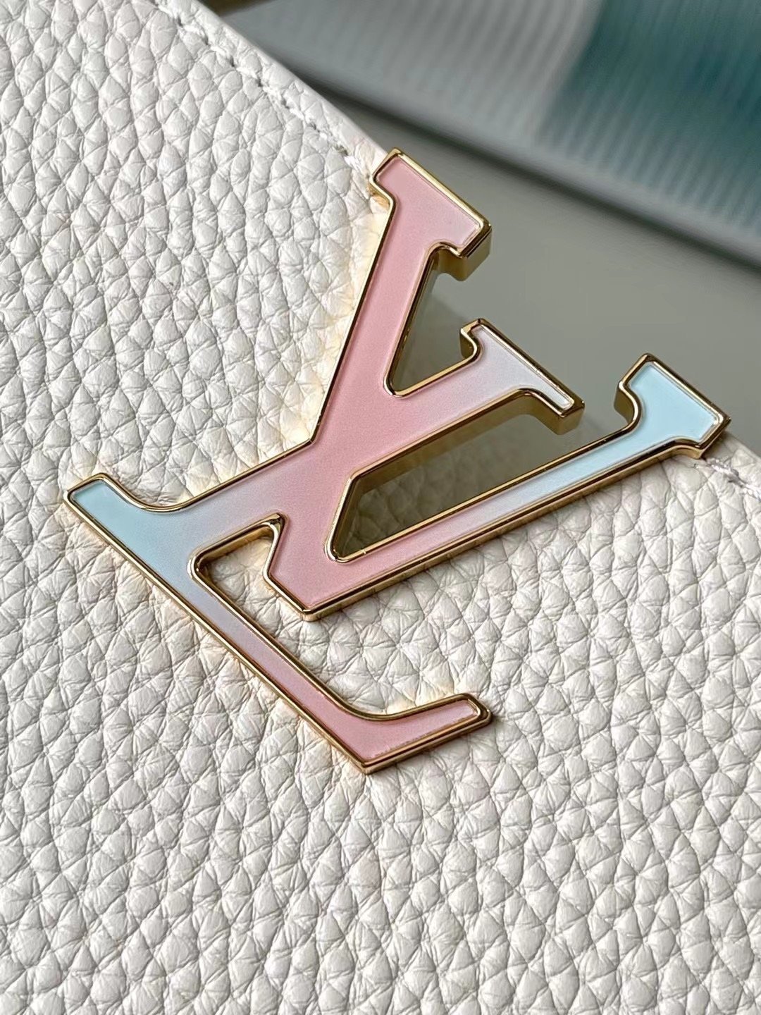 Top original order M23082/M48865 Chinese Valentine’s Day limited edition. This Capucines handbag is from the Milky Way series, presenting an exclusive diligent gift for Valentine’s Day. Taurillon leather is dip-dyed in soft tones. The dazzling light and rainbow gradient of the metal parts set off the elegant contrast. The detachable chain and leather shoulder strap are convenient. Shoulder or cross-body size:31.5 * 20 * 11 cm