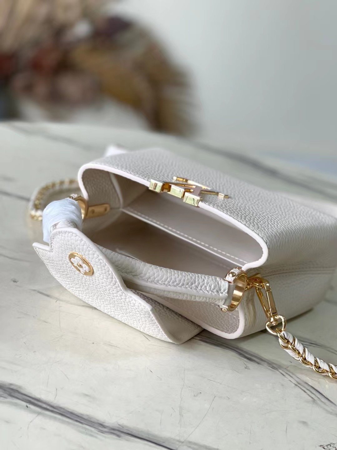 Top original order M23082/M48865 Chinese Valentine’s Day limited edition. This Capucines handbag is from the Milky Way series, presenting an exclusive diligent gift for Valentine’s Day. Taurillon leather is dip-dyed in soft tones. The dazzling light and rainbow gradient of the metal parts set off the elegant contrast. The detachable chain and leather shoulder strap are convenient. Shoulder or crossbody Size:21 * 14 * 8 cm