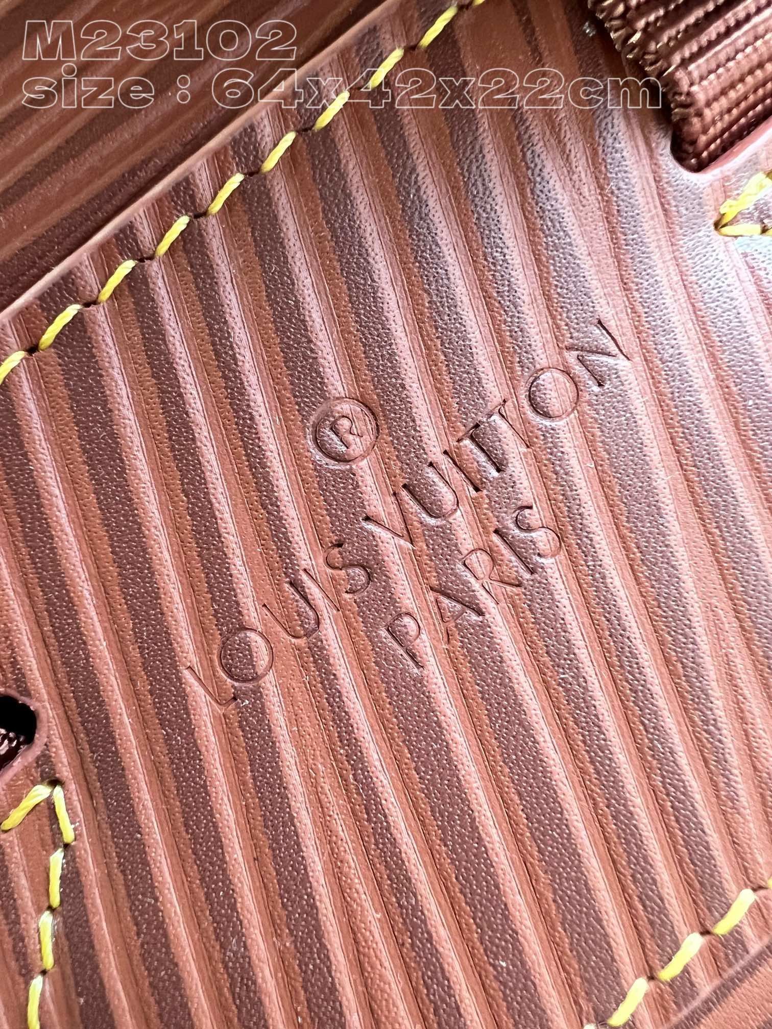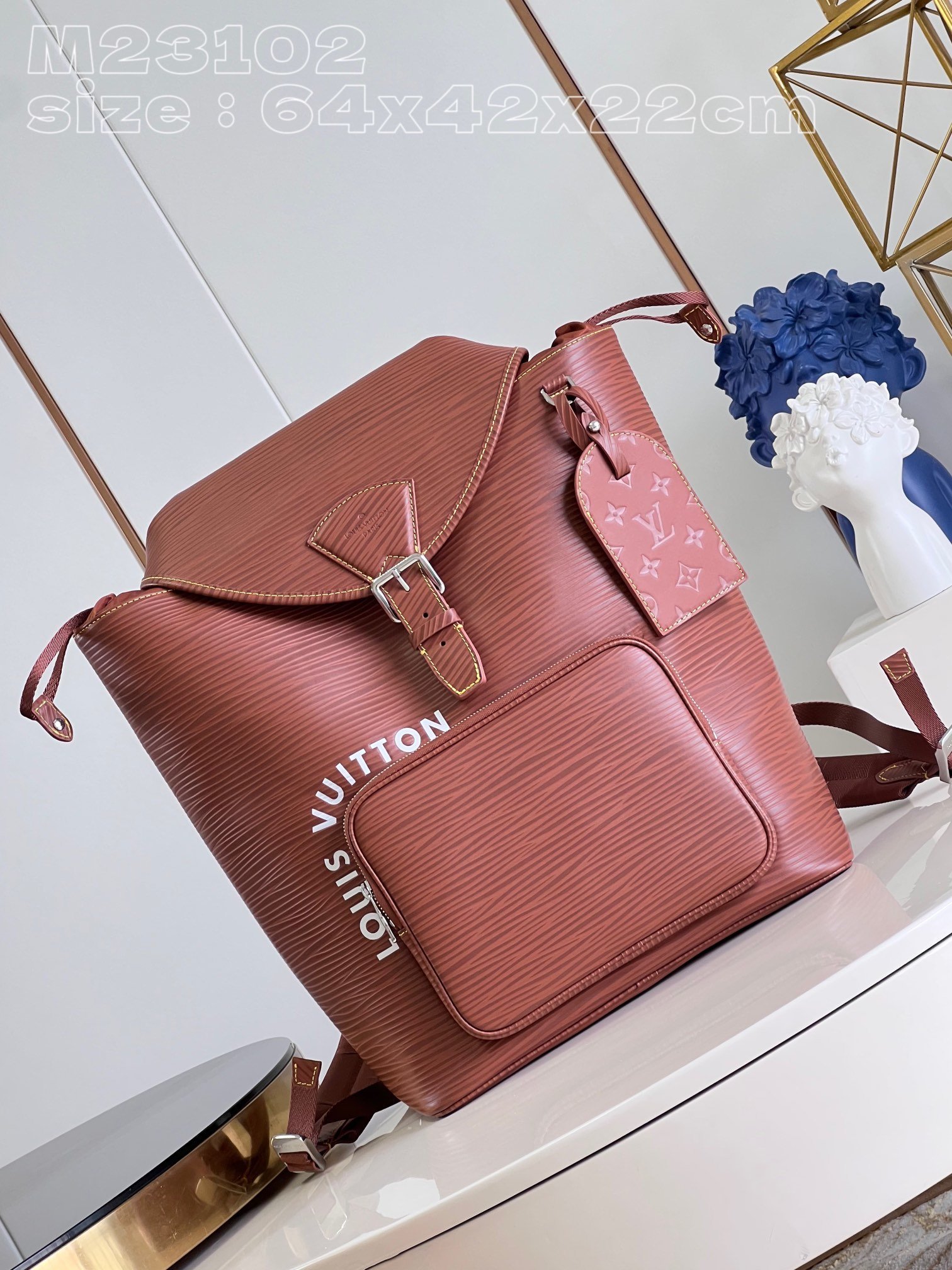 [Exclusive real shot M23099 brown] This Montsouris backpack is made of cow leather, showing an enlarged version of the Epi leather embossing. Drawstring closure and zippered front pocket allow for easy travel, the Louis Vuitton logo surrounds the front pocket, and a removable name tag is embellished with Monogram elements. 32 x 40 x 19 cm (length x height x width)