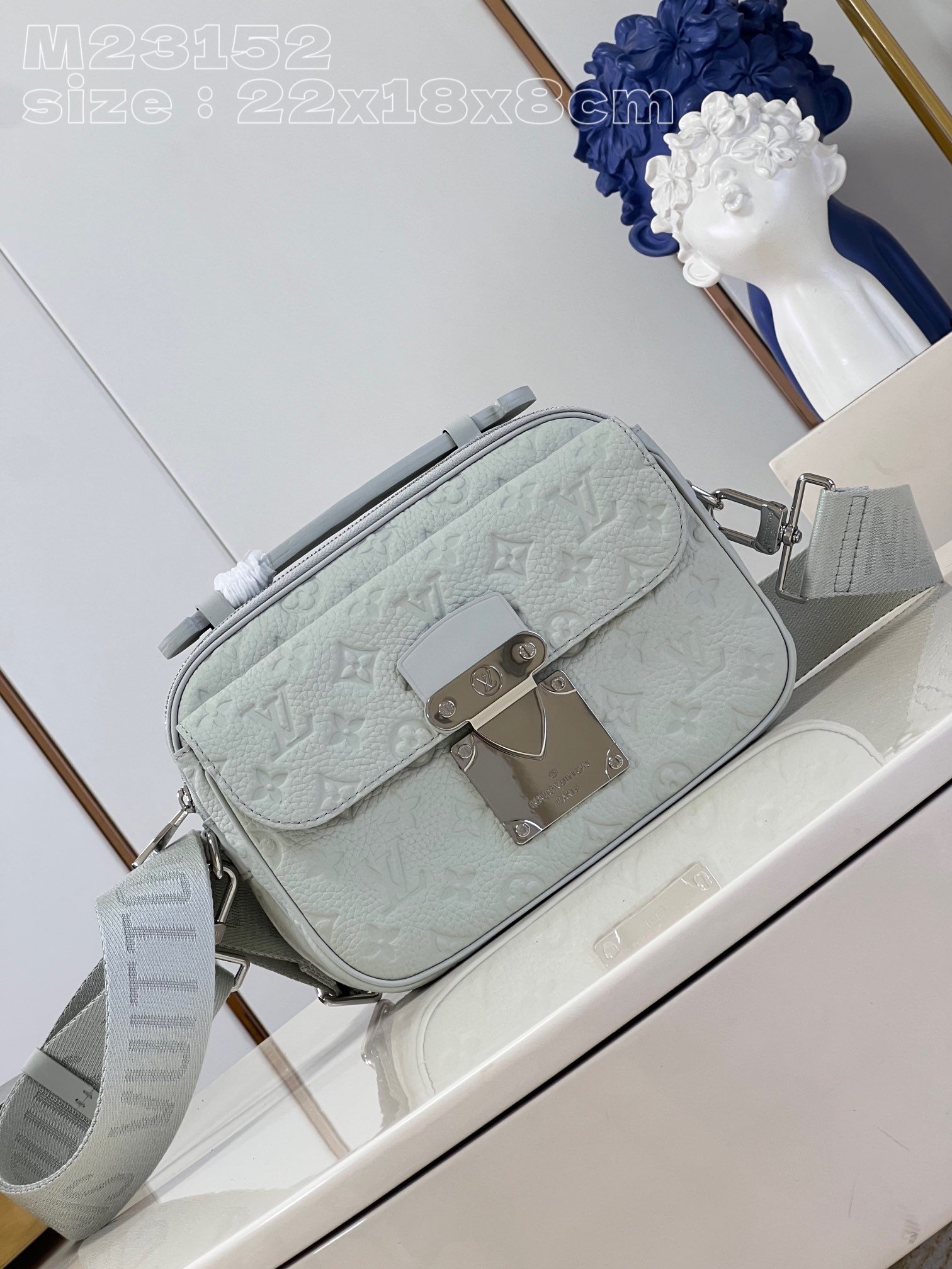 [Exclusive real shot M23152 gray] This S Lock messenger bag is made of grained Taurillon leather with embossed LV letters and Monogram floral pattern. The spacious front pocket opens with an S Lock magnetic closure, a nod to Georges Vuitton’s luggage lock design from 1886. The wide, removable and adjustable shoulder strap adds flexibility. 22 x 18 x 8 cm (length x height x width)